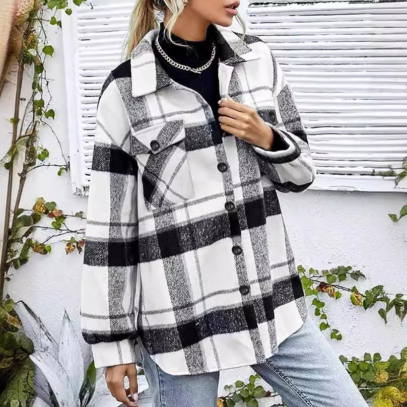 Skjortan har ett klassiskt rutmönster som ger en tidlös känsla. Den är mångsidig nog att bäras både som ett lager över en topp eller som en fristående stilfull detalj. Med praktiska fickor och knappstängningar är den både funktionell och snygg.