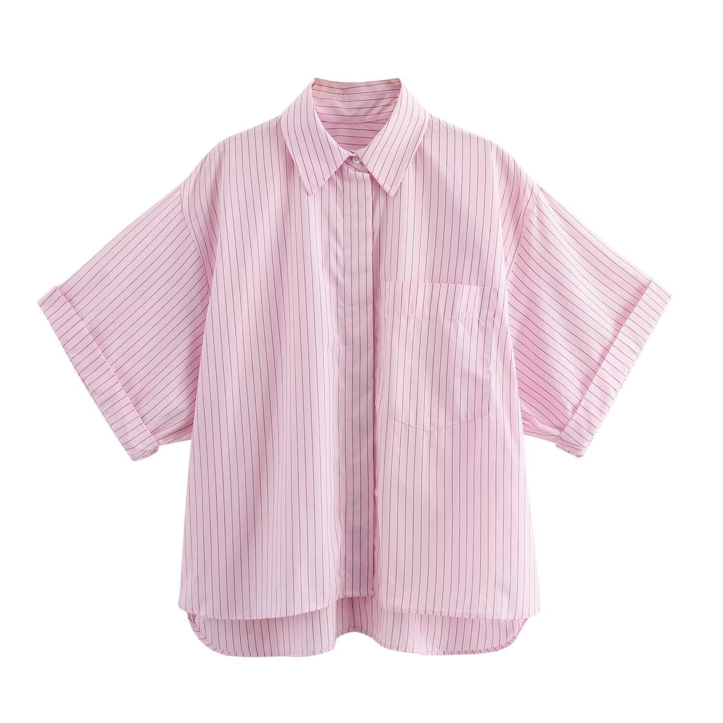 Denna korta randiga skjorta är perfekt för att ge din outfit en avslappnad men stilren känsla. Med sin lätta design och bekväma passform kommer du att känna dig både snygg och bekväm hela dagen.
