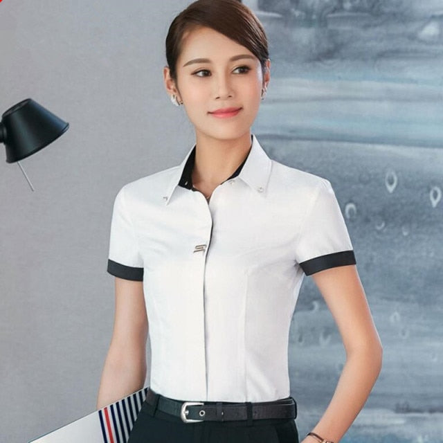 Skjortan finns i både kortärmade och långärmade varianter, vilket gör den mångsidig för olika säsonger. Den vikta designen på framsidan skapar en chic silhuett, medan den hanterade kragen ger en klassisk touch som passar perfekt till både jeans och kjolar.