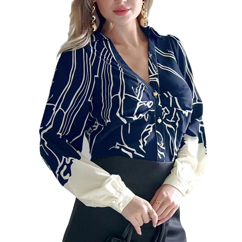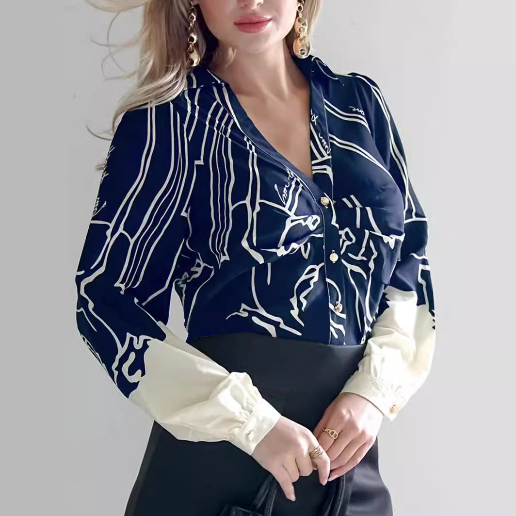 Dam Skjorta Långärmad Abstrakt Mönster Polyester