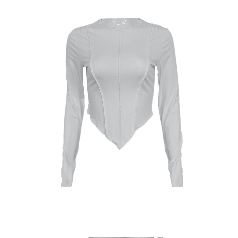 Skjortan har en innovativ design med rundade hems som framhäver figuren på ett smickrande sätt. Den långa ärmlängden gör den idealisk för övergångsperioder, vilket gör den till ett mångsidigt plagg för olika tillfällen.
