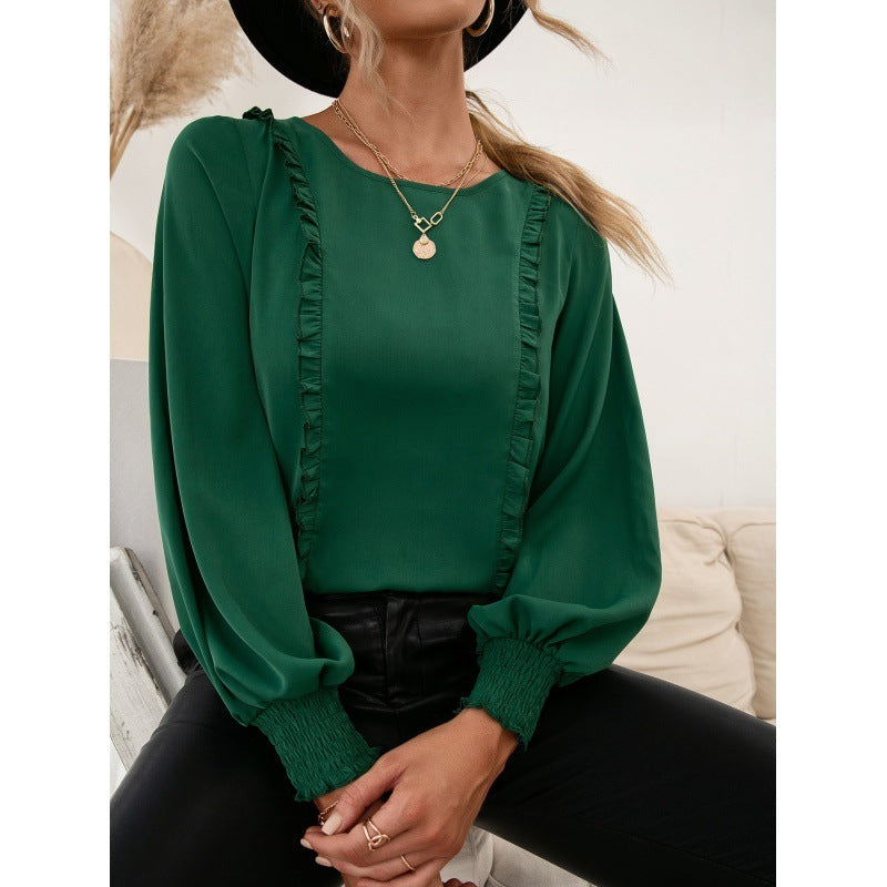 Långärmad Skjorta för Dam i Mörkgrön Polyester