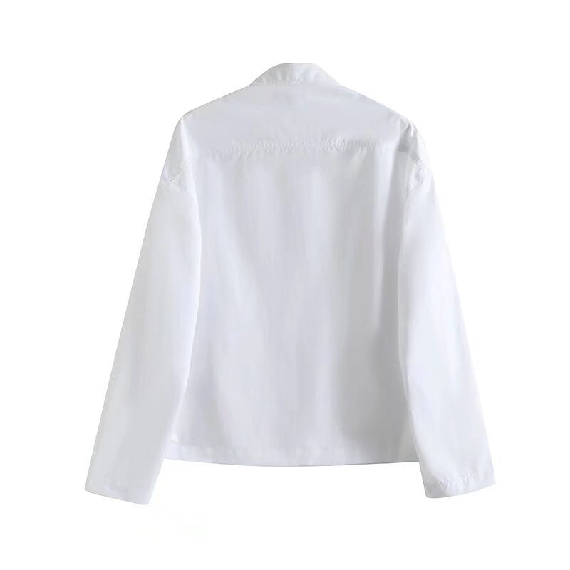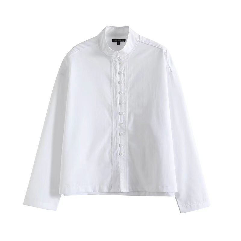 Denna skjorta har en modern design med knappar och en monokrom färgpalett som gör den lätt att kombinera med olika plagg. Den är idealisk för lager-på-lager-styling och ger en elegant touch till din outfit.