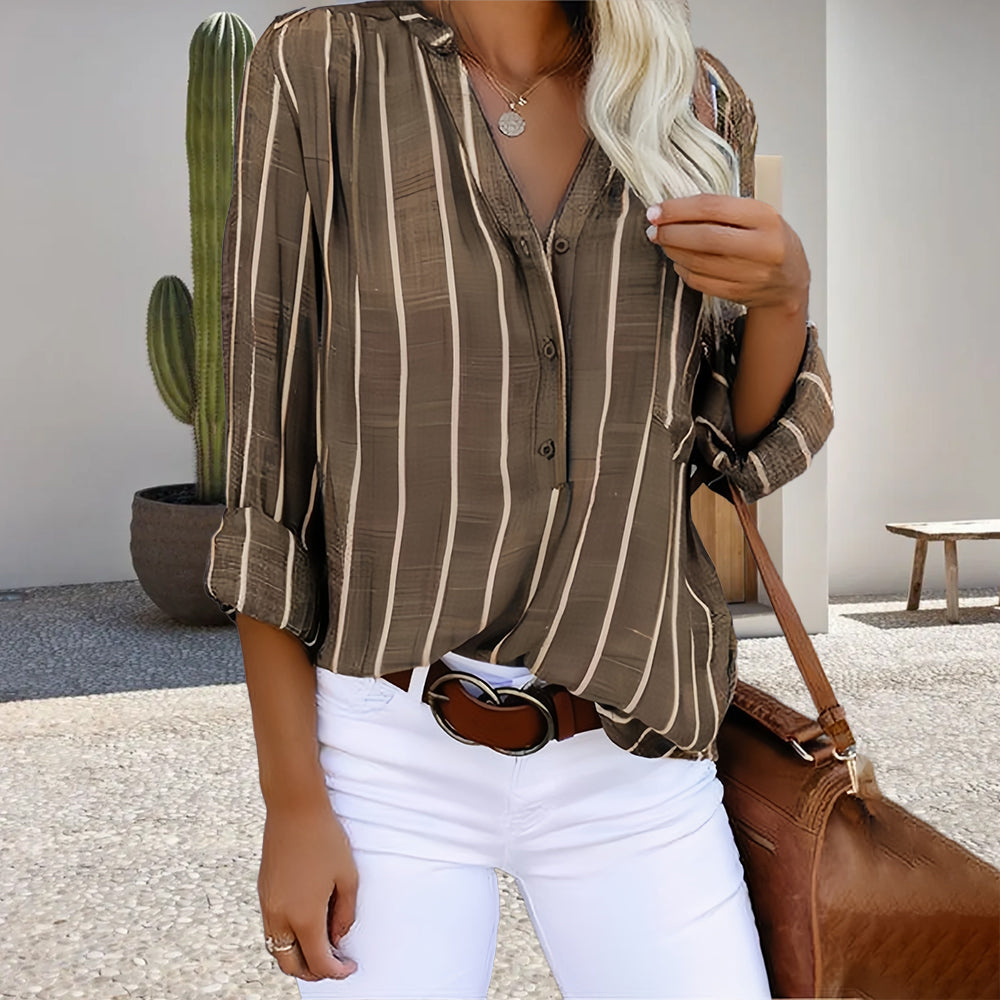 Randig Långärmad Skjorta för Dam