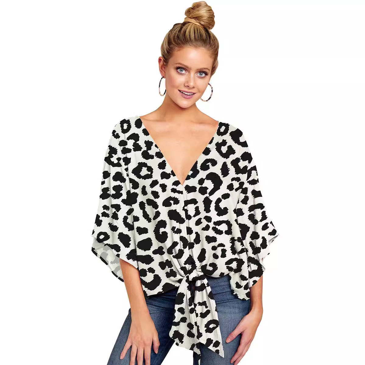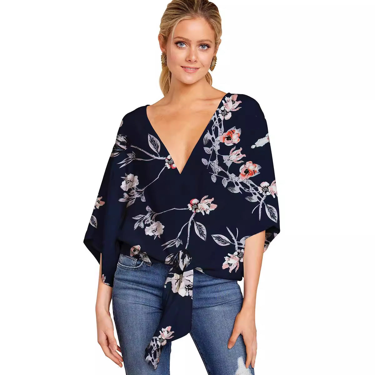 Dam Skjorta V-ringning Tryckt Bomull Trekvartsärmar