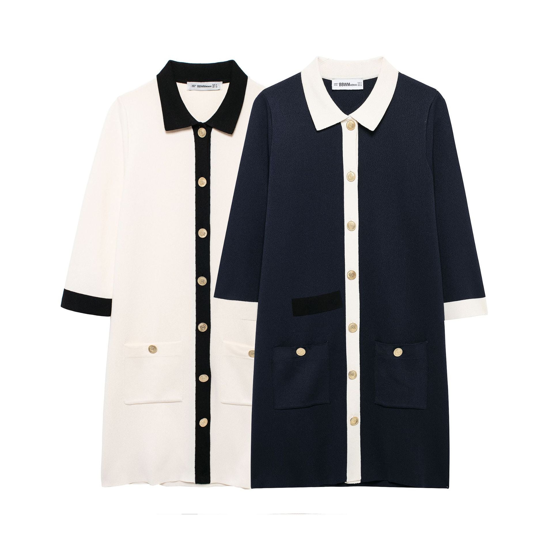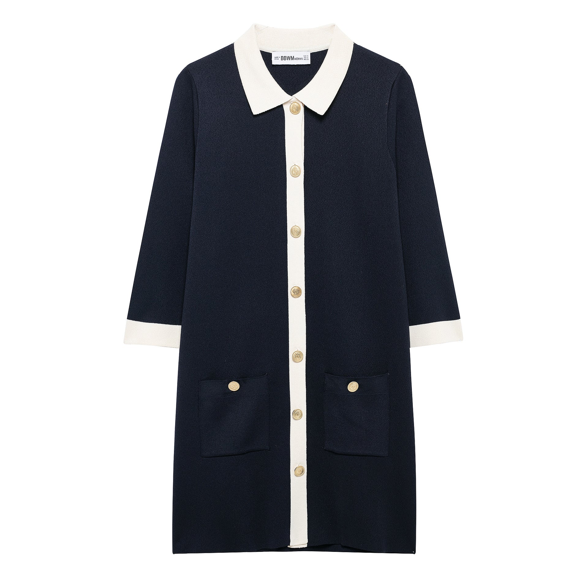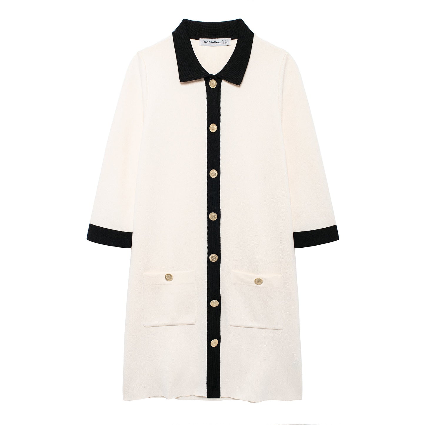 Skjortablusklänningen har en tidlös A-line silhuett som smickrar alla kroppstyper. Den eleganta kragen och de moderna detaljerna ger en sofistikerad touch, vilket gör den idealisk för kontoret eller en kväll ute. Med 3/4 ärmar är den perfekt för alla säsonger.