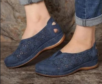 Skorna är tillverkade av flexibla material som anpassar sig efter fotens form, vilket säkerställer en perfekt passform. Den ortopediska sulan är utformad för att lindra tryck och främja fotens hälsa, vilket gör dem idealiska för långa promenader eller en hektisk arbetsdag.