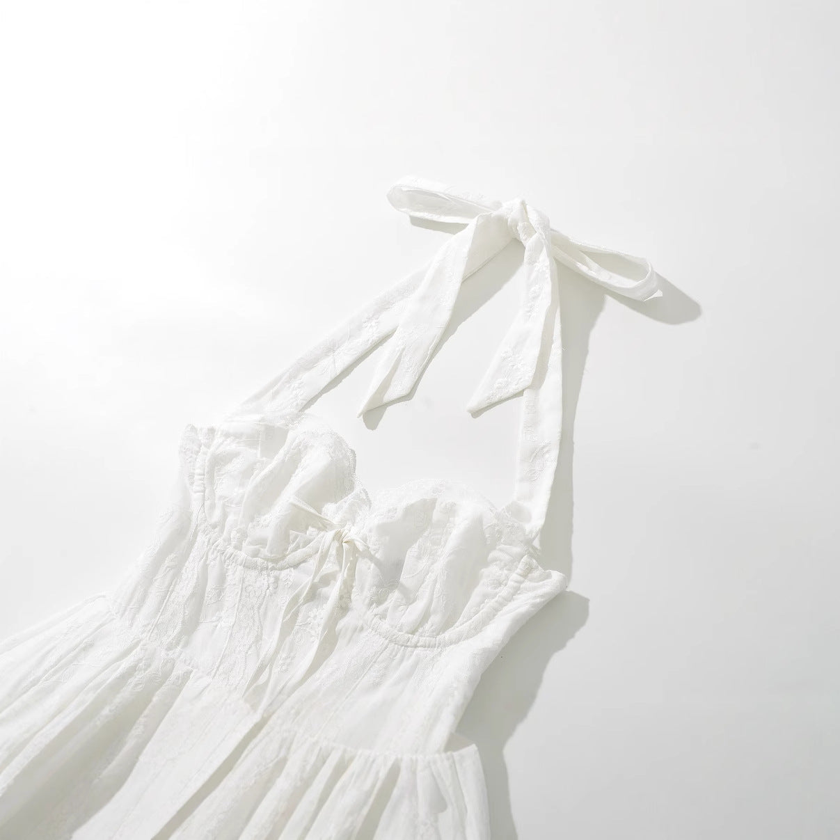 Klänningen har en lekfull klyvning och justerbar bindning som gör att du kan anpassa passformen efter din kropp. A-linje silhuetten smickrar figuren och ger en feminin känsla, vilket gör den idealisk för både avslappnade och festliga tillfällen.