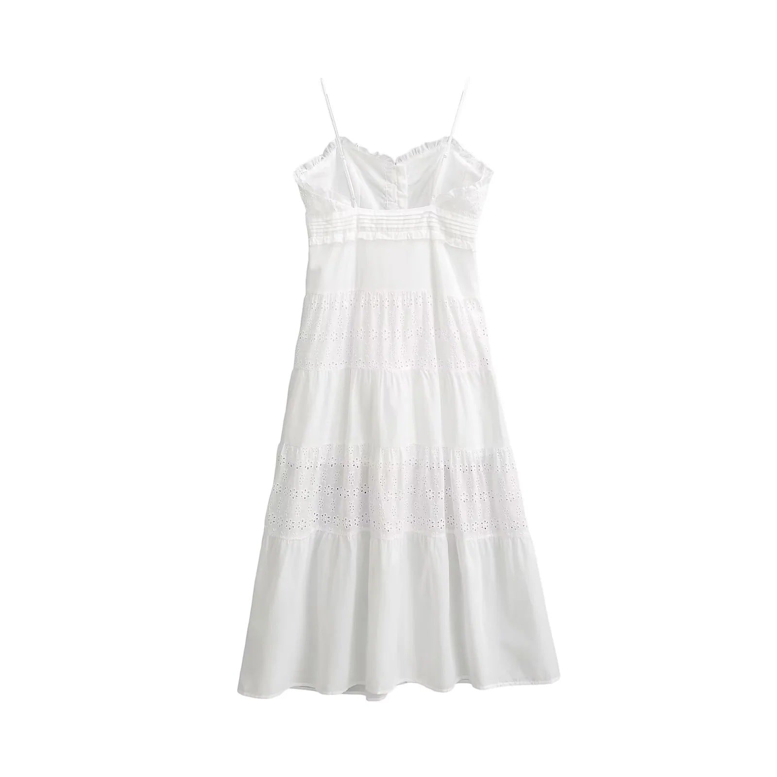Designad med lekfulla ruffles, framhäver klänningen en feminin silhuett. De justerbara spaghettibandarna gör att du kan anpassa passformen efter din önskan, vilket ger en personlig touch till din stil.
