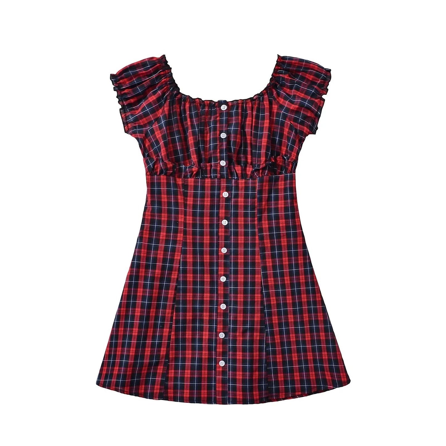Klänningen har en lekfull karostil som gör den idealisk för sommarens utflykter och speciella tillfällen. Den elastiska nederkanten och den knäppta fronten ger en modern touch, medan de korta, romantiska ärmarna framhäver din feminina sida.