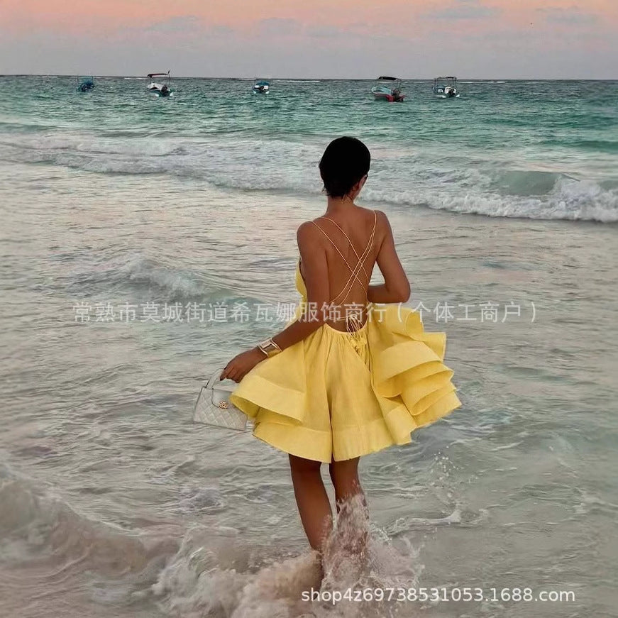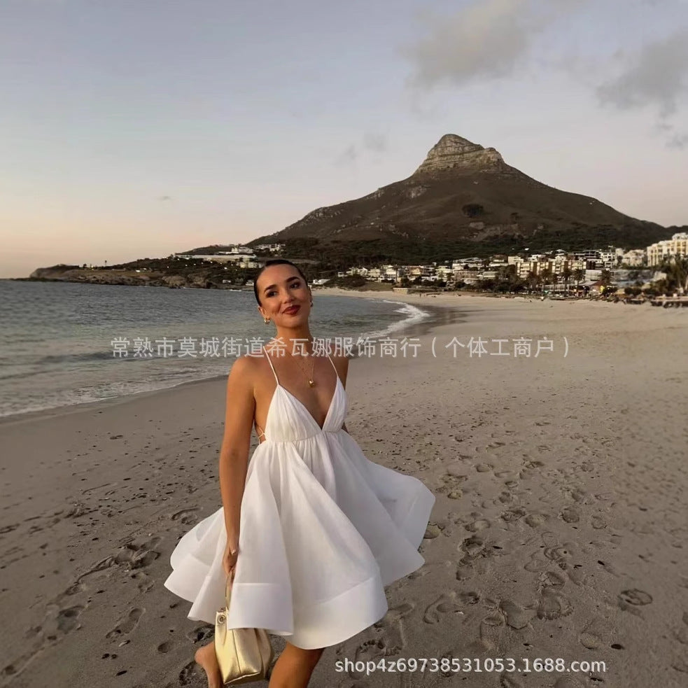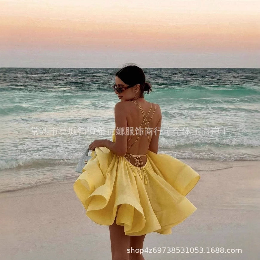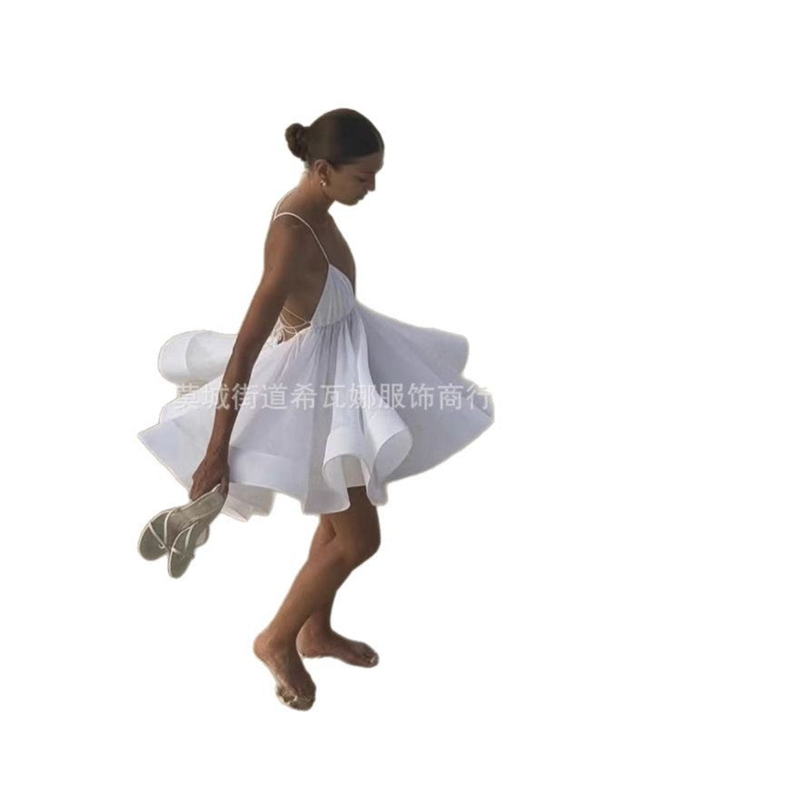 Dam Sommarklänning Voluminös Kjol Justerbar Bakre Halsringning Lätt Tyg