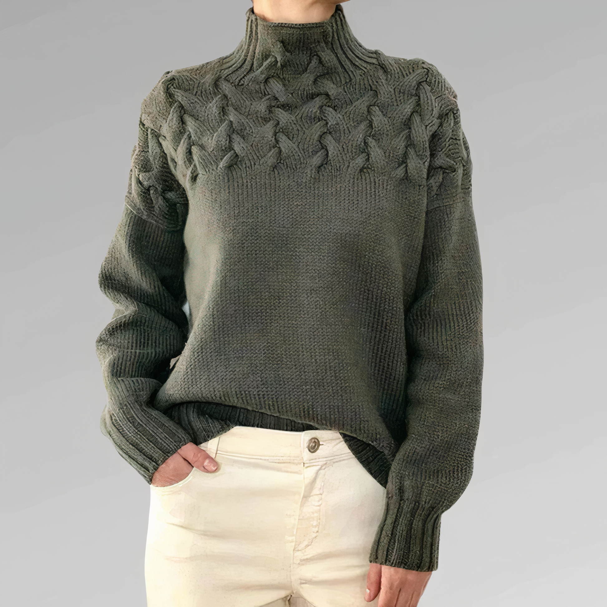 Tröjan har ett vackert kabelmönster som ger en tidlös och chic look. Den är idealisk för både vardagligt bruk och mer formella tillfällen, vilket gör den till ett mångsidigt plagg i din garderob.