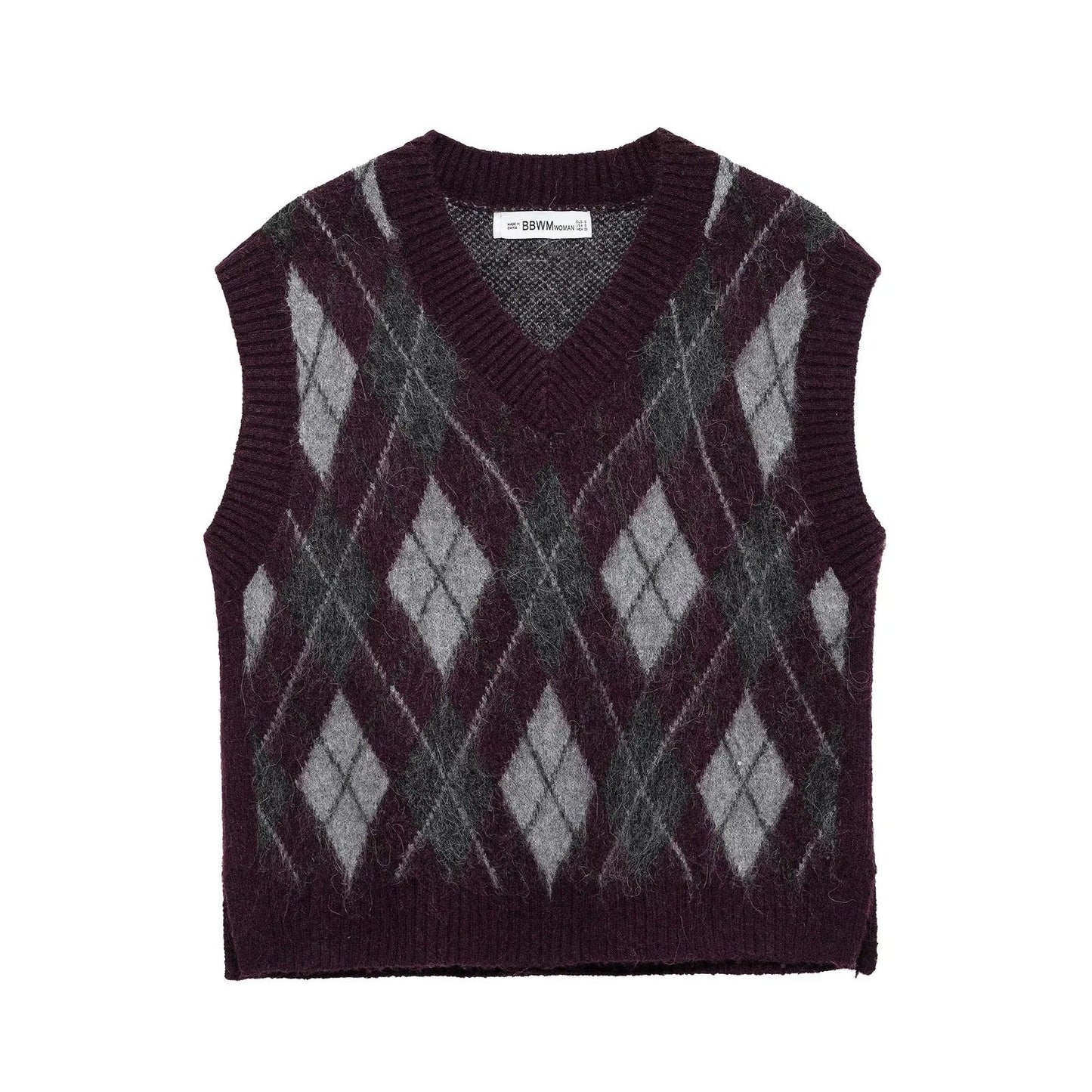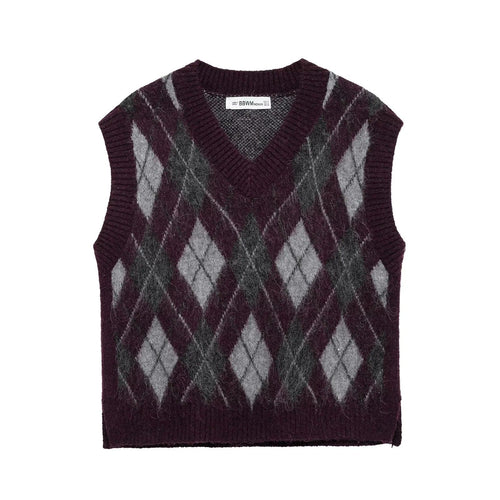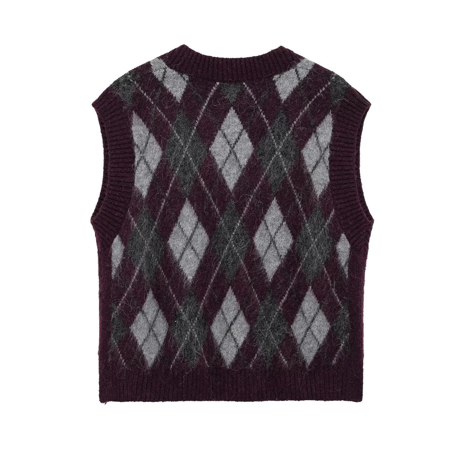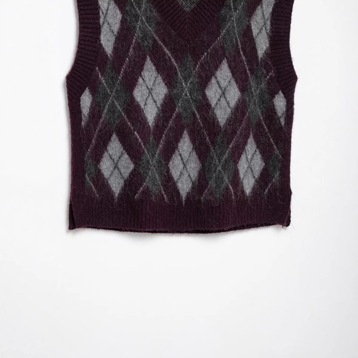 Västen har ett klassiskt diamantmönster som ger en tidlös känsla. Den är idealisk för både vardag och fest, och kan enkelt kombineras med olika plagg för att skapa en mångsidig look.