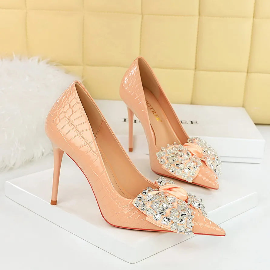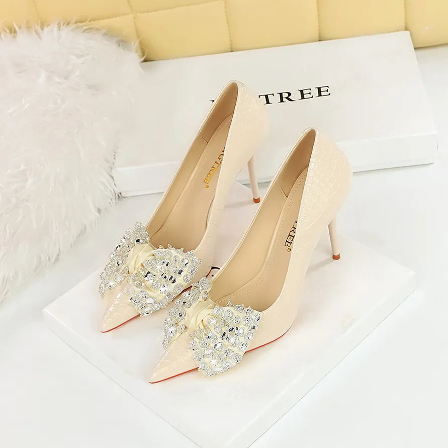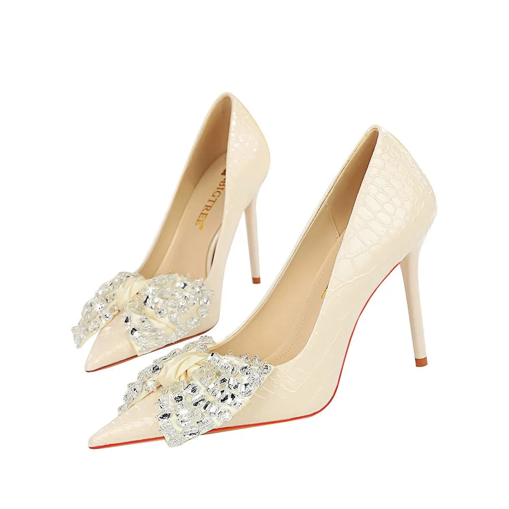 Designen är både modern och tidlös, med en hög klack som ger en smickrande silhuett. Skorna är utrustade med en dekorativ fjärilsknut som tillför en lekfull touch, vilket gör dem till ett utmärkt val för alla modeälskare.