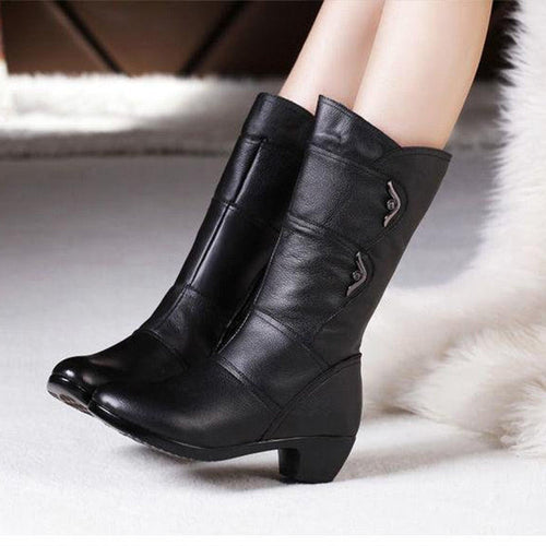 Dam Stövlar Höga med Sidozip och Glidskydd i Läder