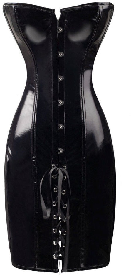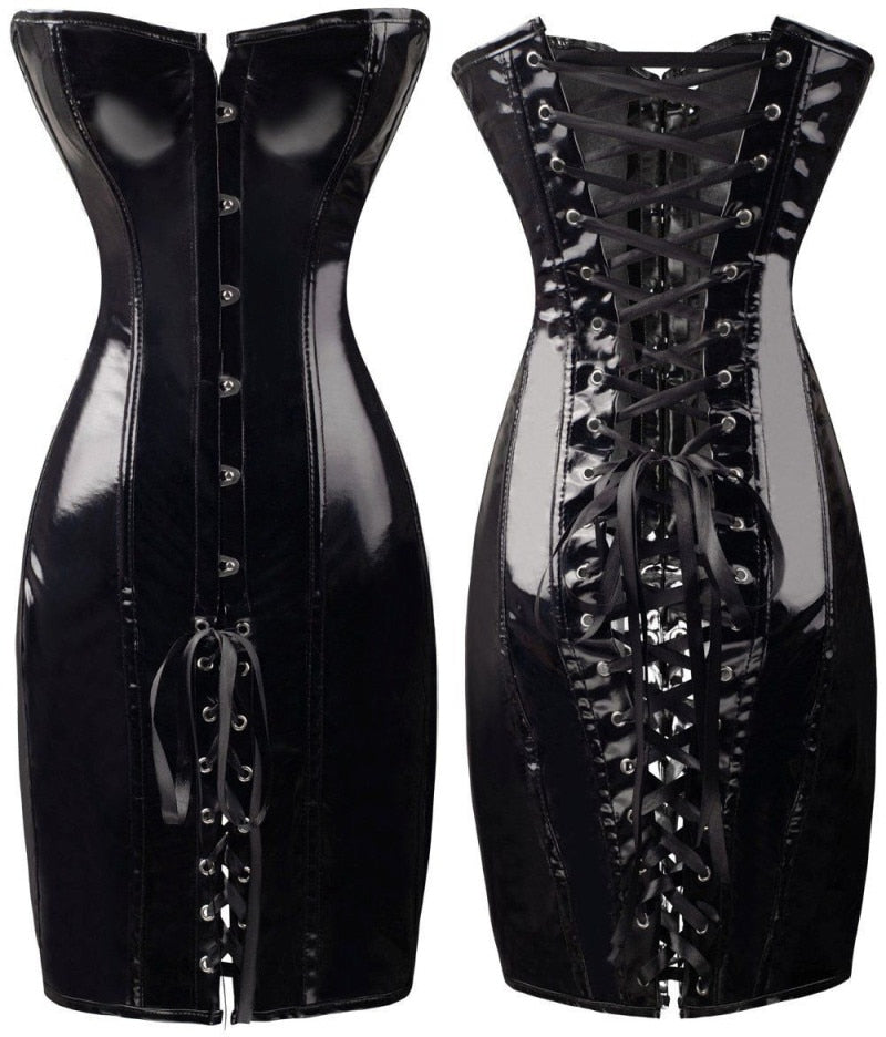 Dam Svart Miniklänning Spetsdetaljer Syntetisk Läder