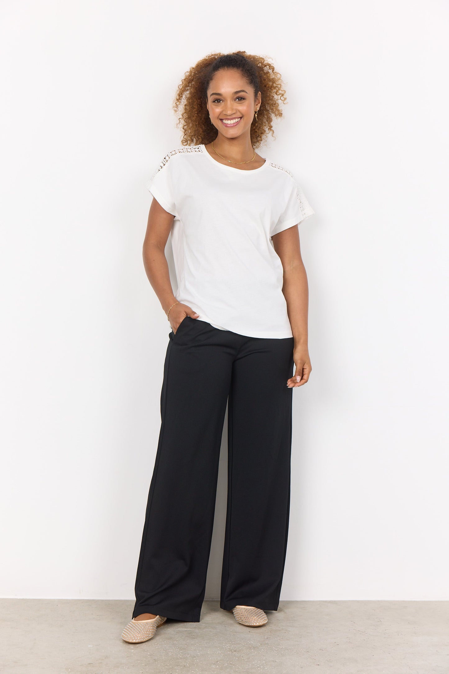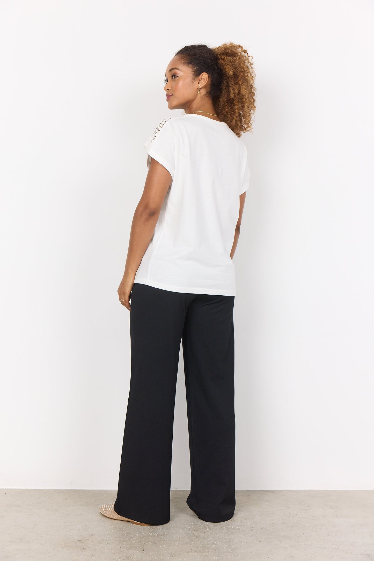 Denna klassiska T-shirt har en cirkulär halsringning och korta ärmar, vilket gör den idealisk för både avslappnade och mer uppklädda tillfällen. Broderidetaljerna ger en unik touch som lyfter hela din outfit.