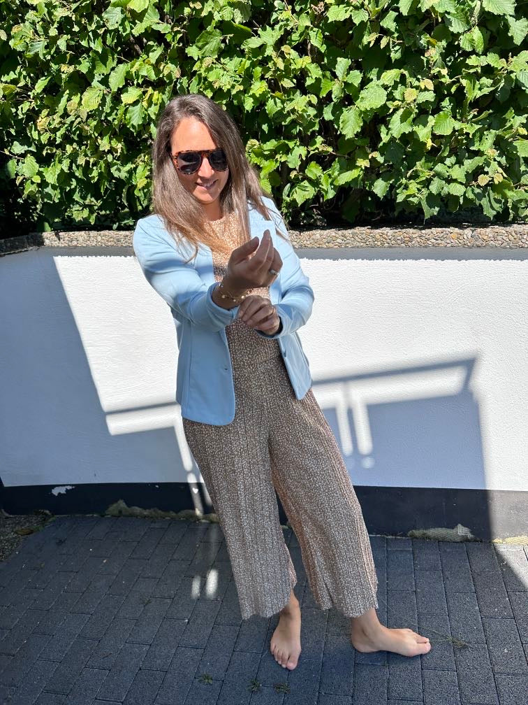 - Kan stylas med veckade byxor för en mer uppklädd look