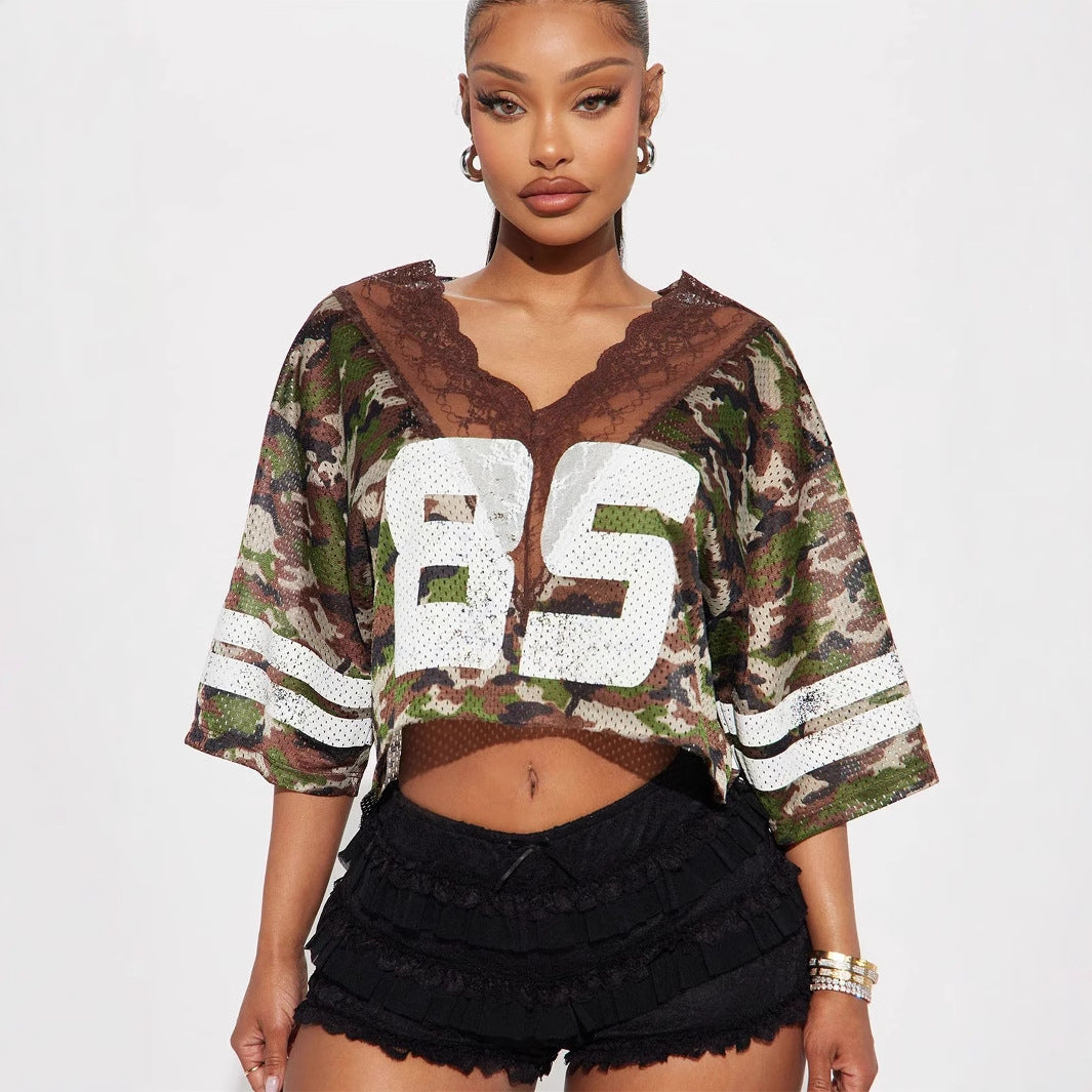 T-shirten har en modern V-ringning och är designad för att passa perfekt vid olika tillfällen, från vardagsbruk till mer avslappnade sociala sammanhang. Den är tillverkad av ett mjukt polyester- och spandexmaterial som ger en skön känsla mot huden.