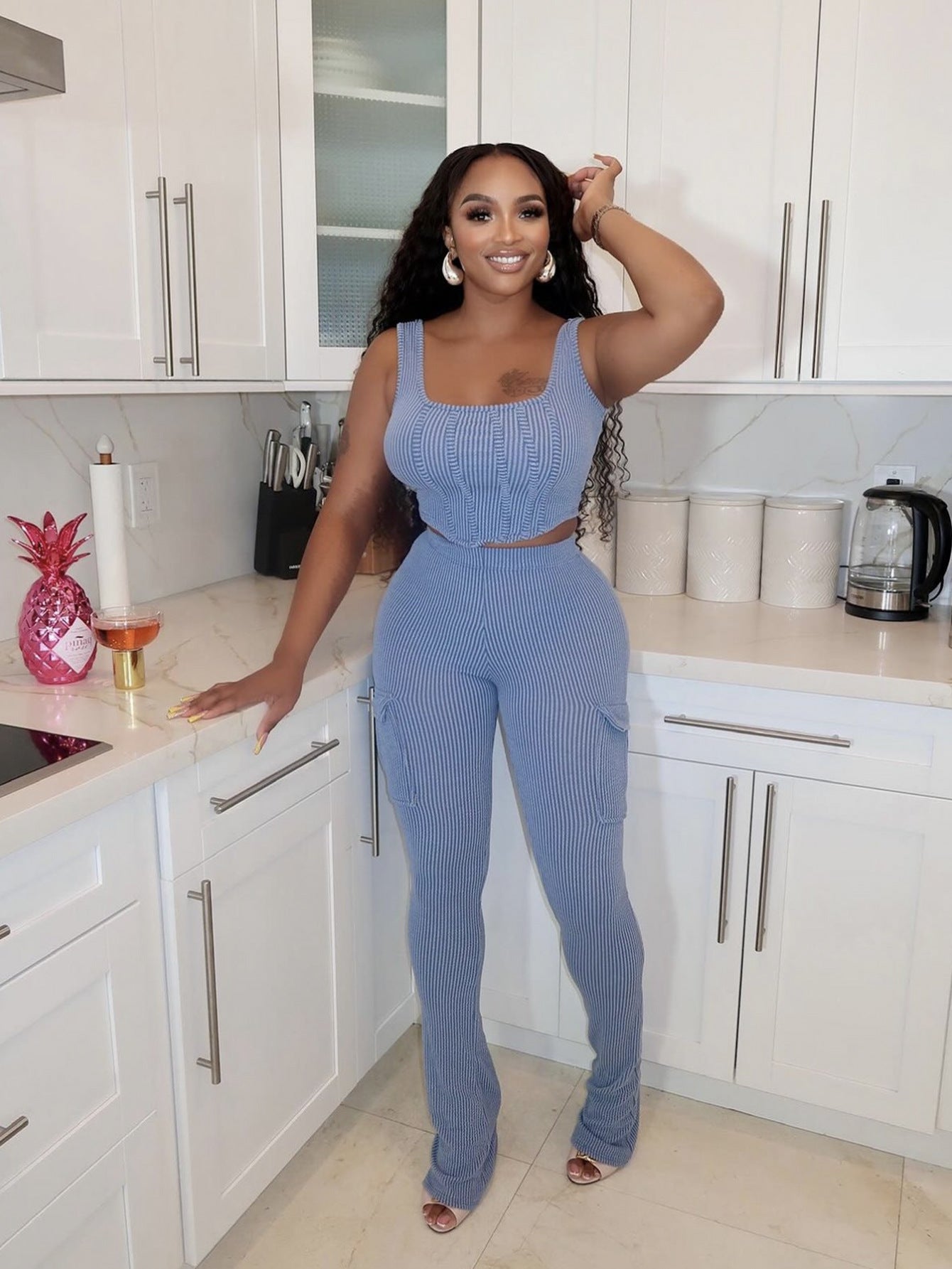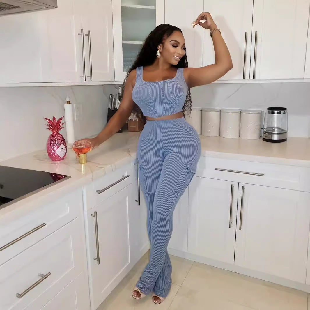 Upplev en perfekt kombination av stil och komfort med detta tank top och byxor set. Det är designat för att ge dig en avslappnad men ändå trendig look som passar för olika tillfällen.