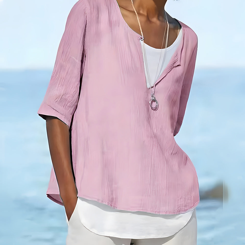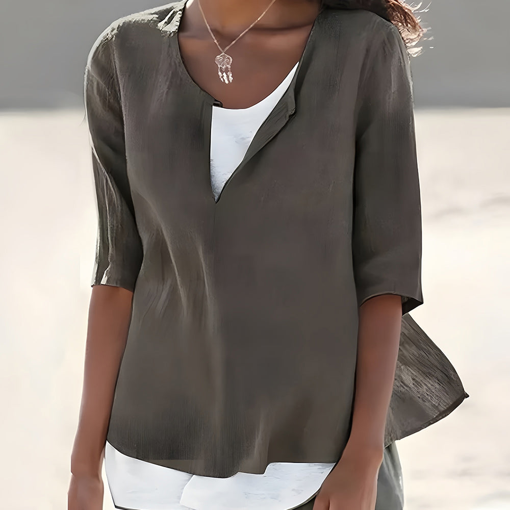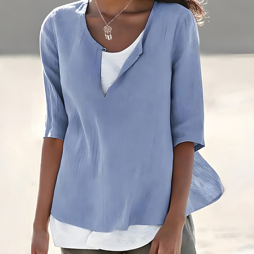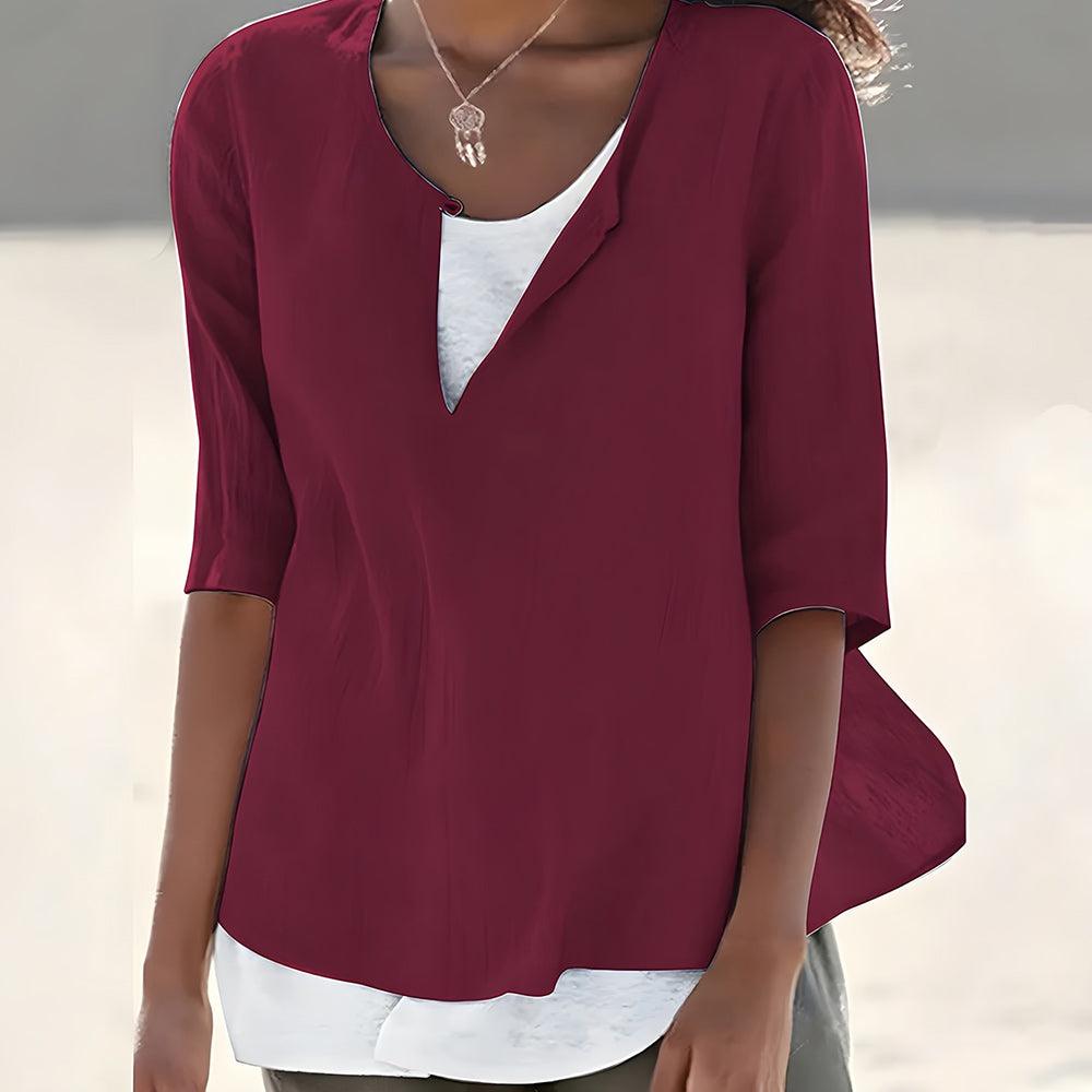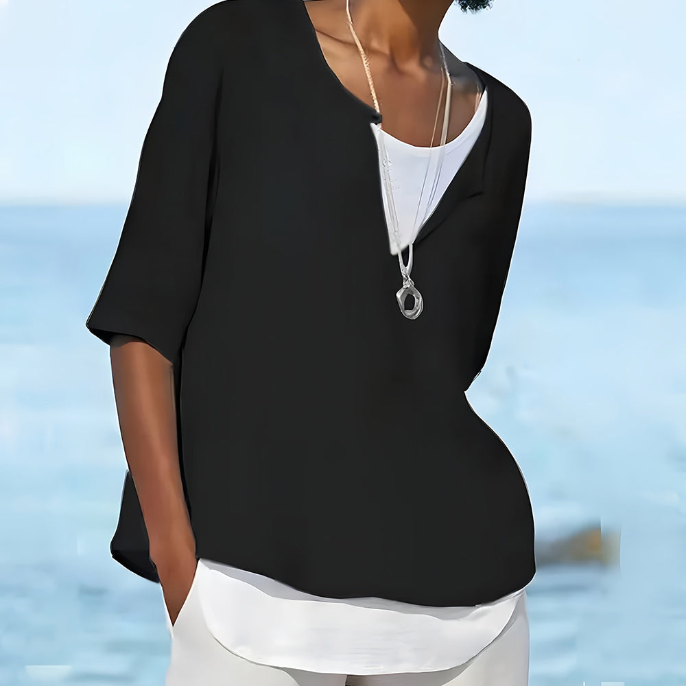 Denna topp har ett unikt tvådelat koncept med en vit inre väst och en skjorta i olika färger. Det lösa snittet passar kvinnor i de flesta storlekar och ger en avslappnad känsla.