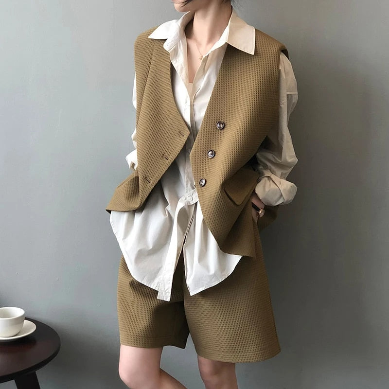 Upplev en perfekt balans mellan stil och komfort med denna avslappnade uppsättning bestående av en topp och shorts. Denna outfit är idealisk för kvinnor som vill ha en chic och enkel look, oavsett tillfälle.