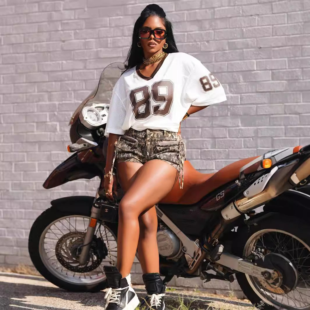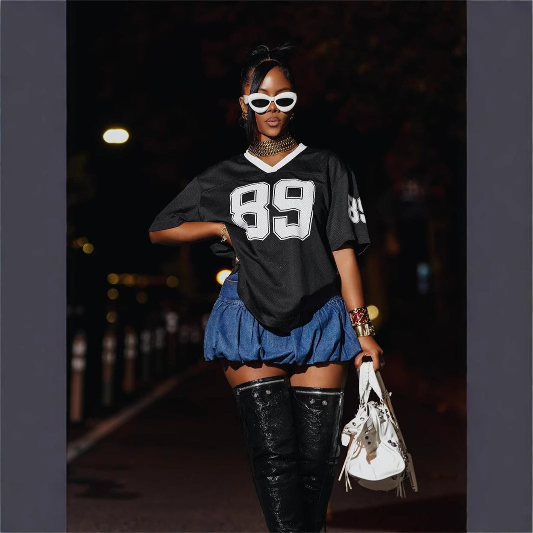 Denna kortärmade topp är perfekt för den moderna kvinnan som vill kombinera stil och komfort. Med sin V-ringning och lätta material kommer du att känna dig både avslappnad och trendig.