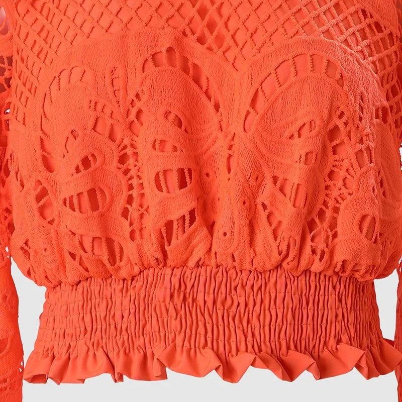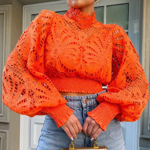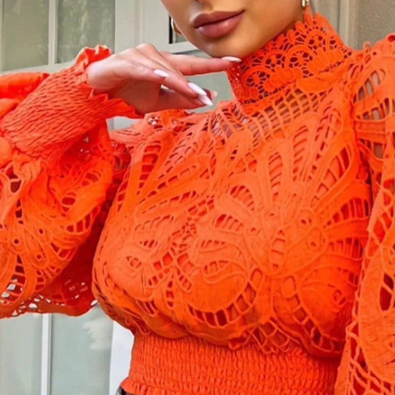 Denna blus är designad med en hög krage och ballongärmar som ger en modern och trendig look. Perfekt för både vardag och fest, den är ett utmärkt val för att skapa en iögonfallande vinteroutfit.