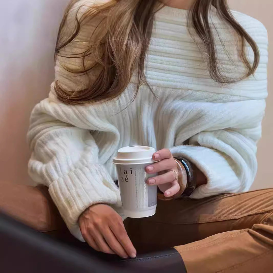Dam Tröja Avslappnad Mjuk Tyg med Ribstickade Detaljer