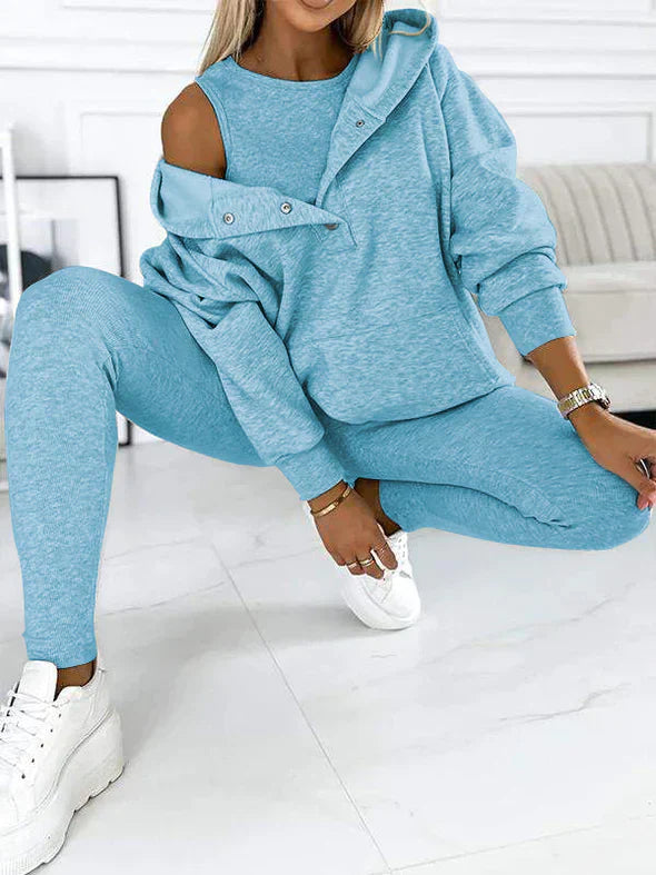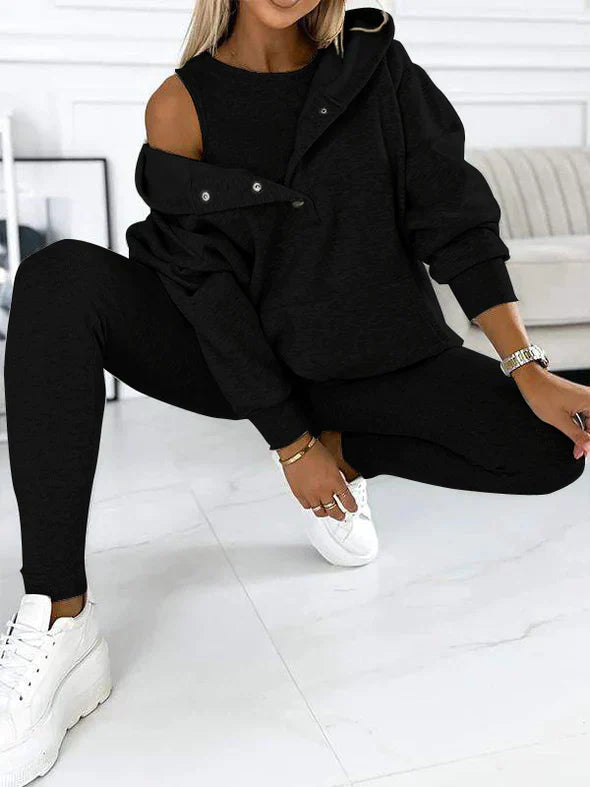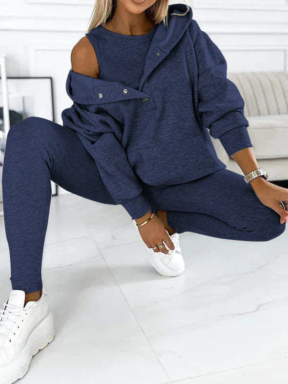 Tröja kostymen är designad för att vara mångsidig och passar utmärkt för olika tillfällen. Med sin eleganta stil och mjuka material kommer du att känna dig bekväm och se fantastisk ut, oavsett situation.