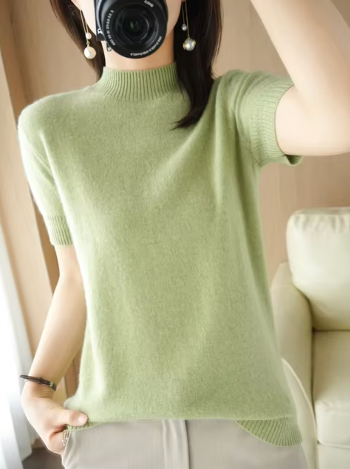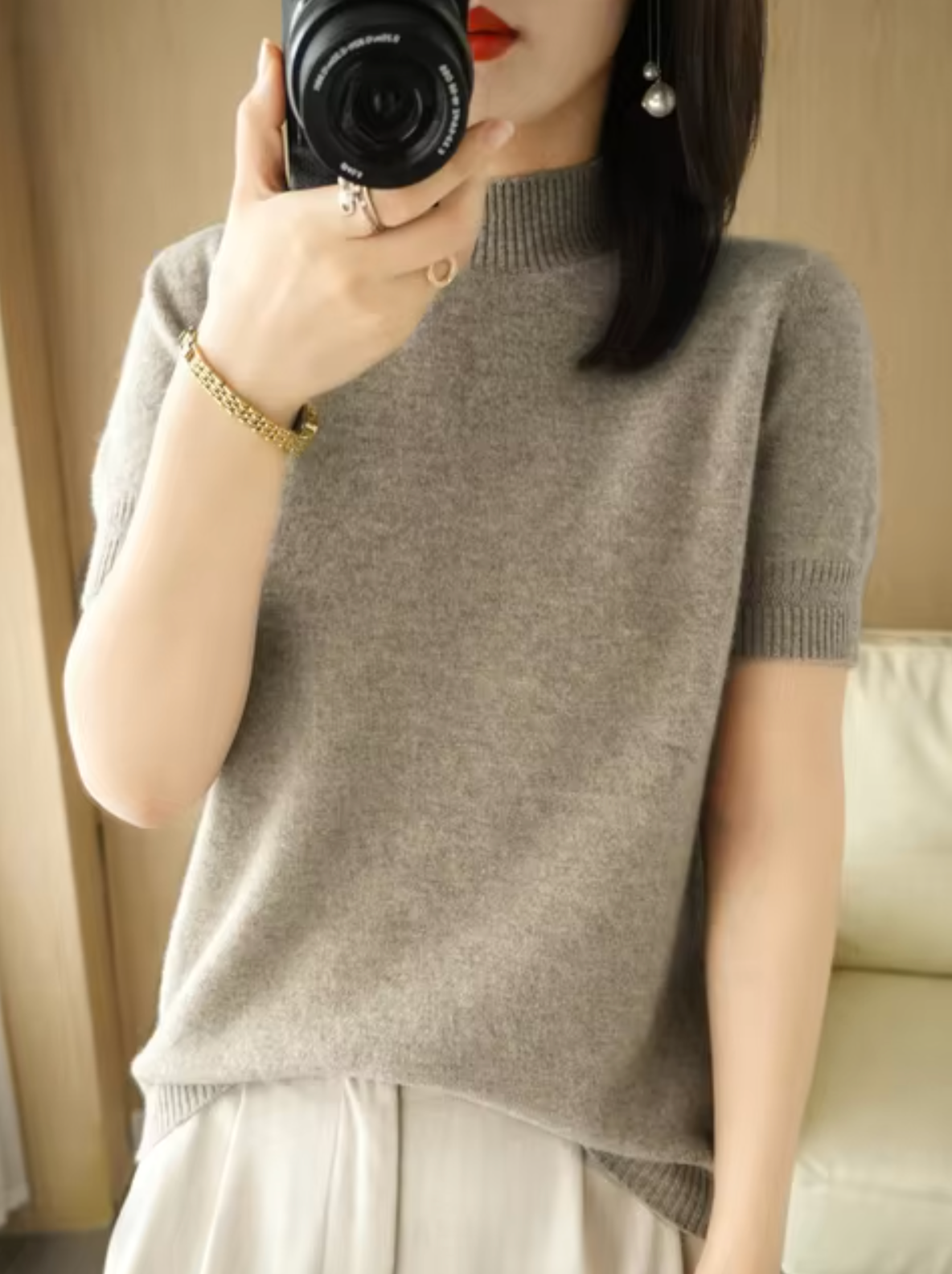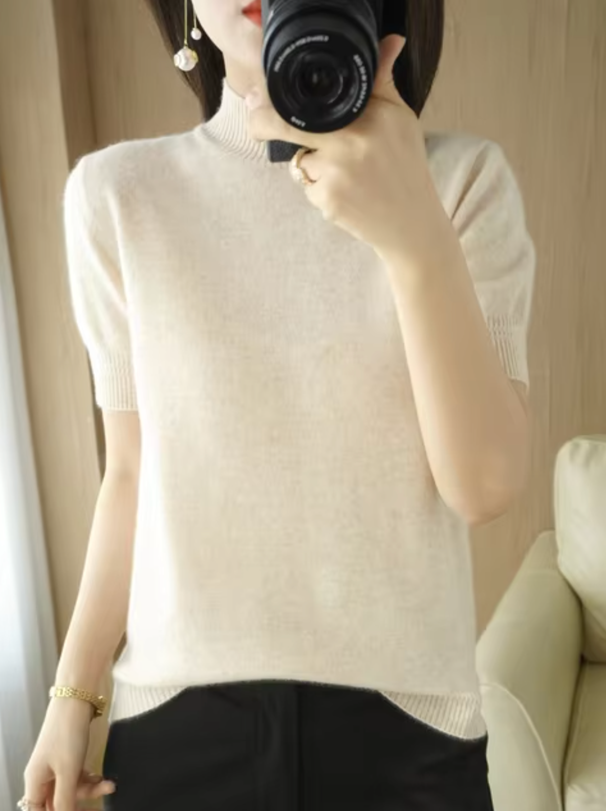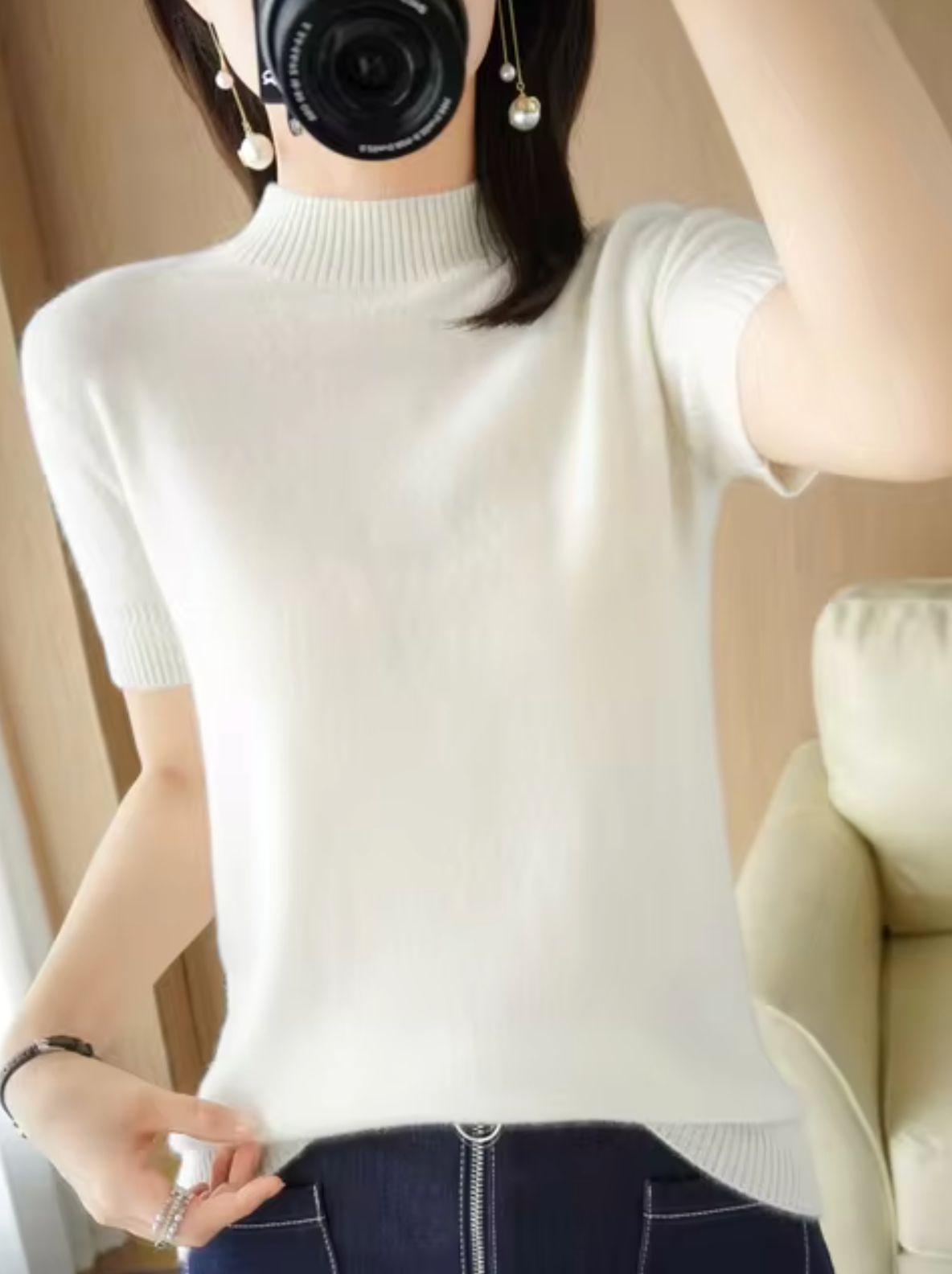 Tröjan har en rund halsringning och korta ärmar, vilket gör den idealisk för lager-på-lager-styling eller att bära ensam. Den smala, smickrande passformen gör att den passar in i alla garderober och är ett utmärkt val för både vår- och höstdagar.
