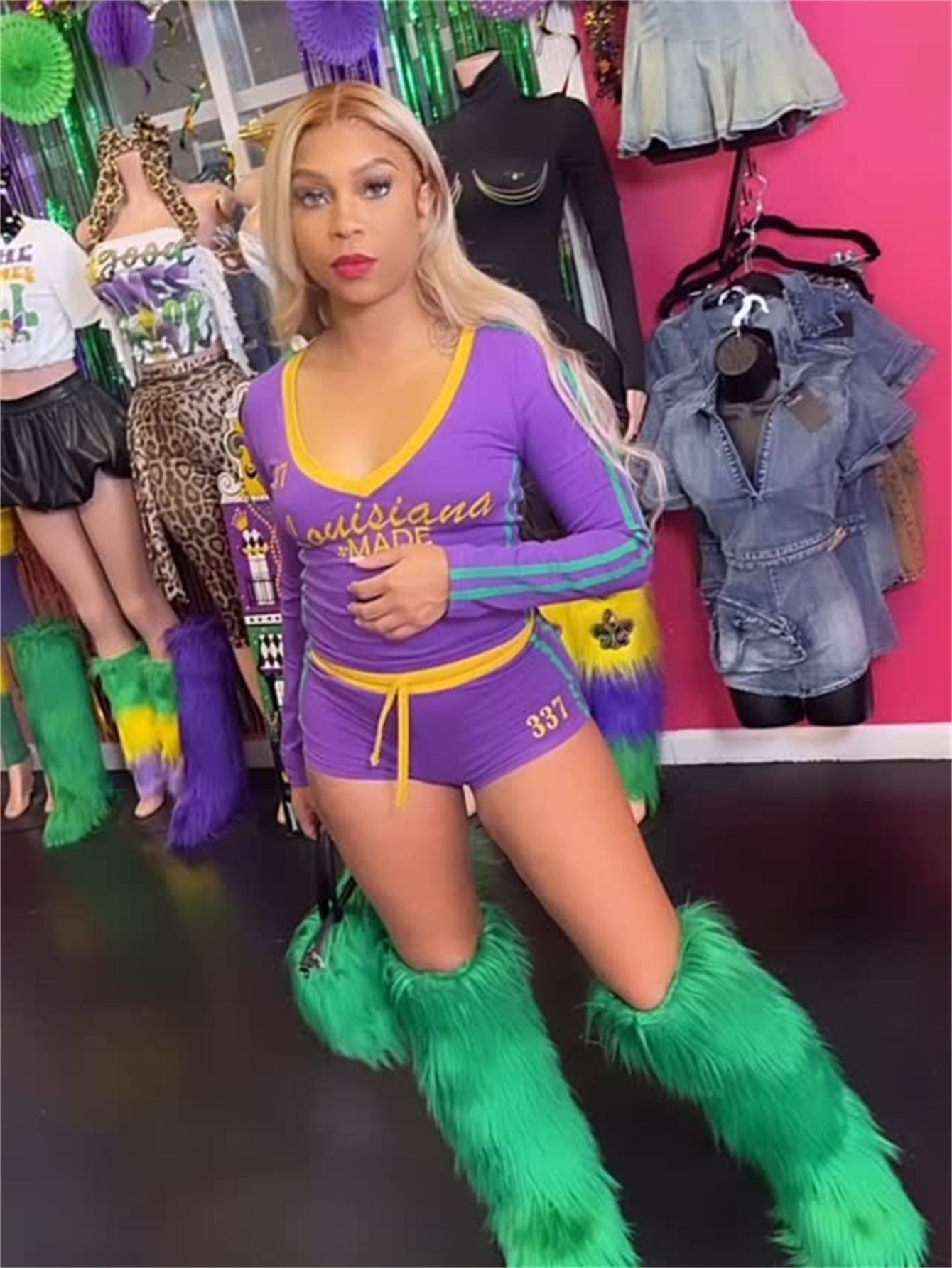 Upplev en perfekt kombination av stil och komfort med detta V-hals topp och slipshorts set. Det är designat för att ge dig en avslappnad känsla samtidigt som du ser fantastisk ut.