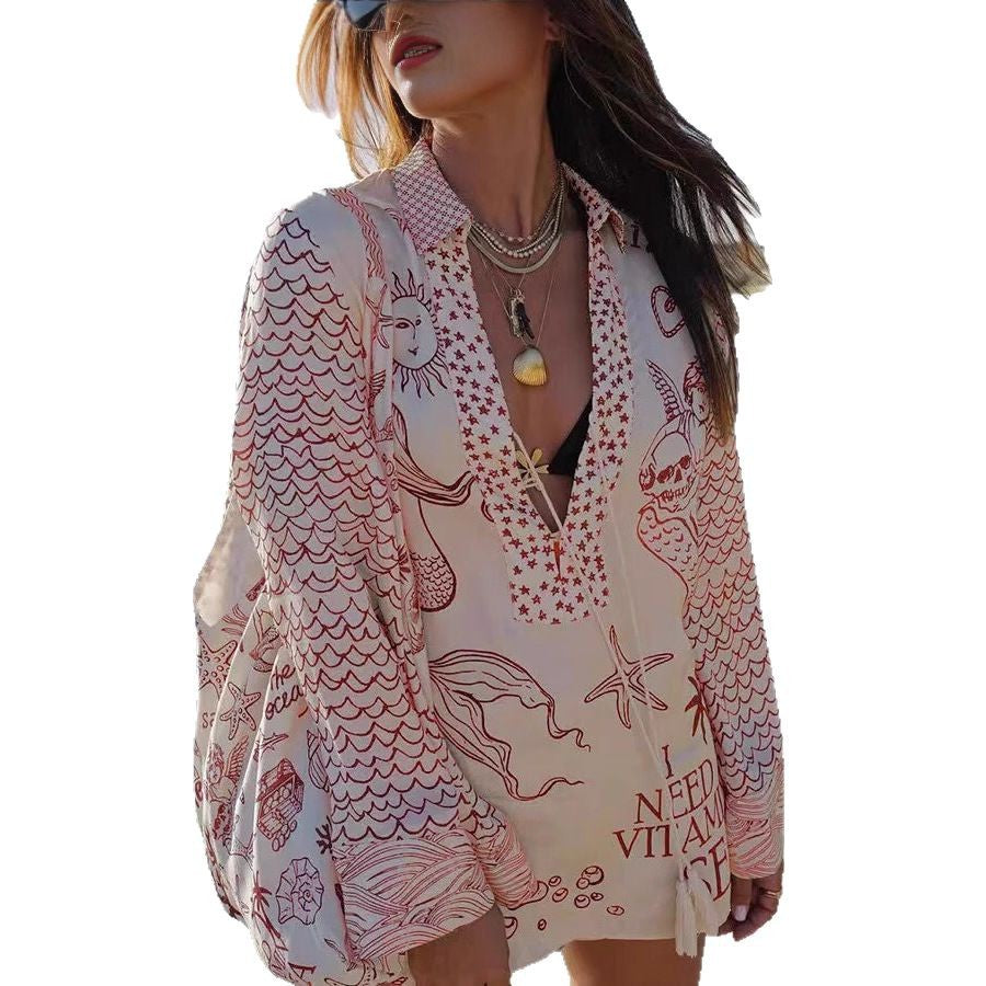 Designad med ett djurtryck, erbjuder denna outfit en unik och trendig look. De långa ärmarna och den avslappnade passformen gör den idealisk för både avslappnade och mer formella tillfällen.