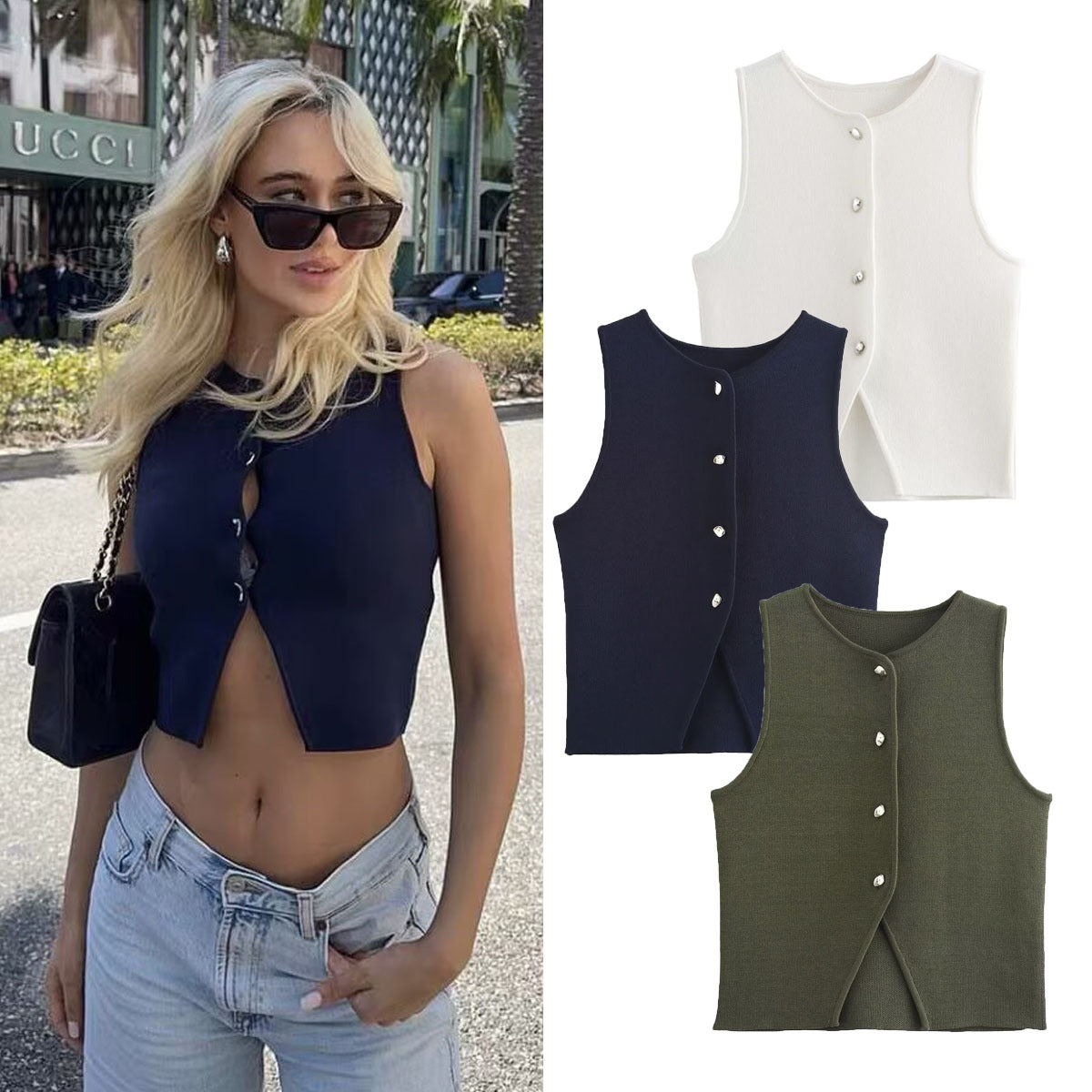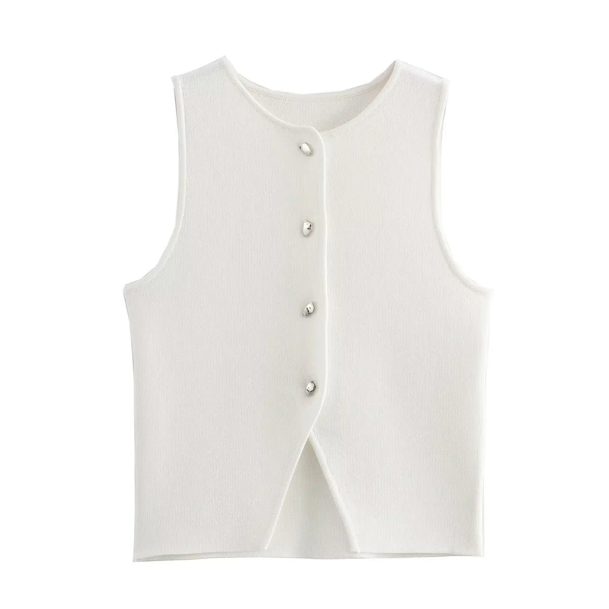 Dam Väst V-hals Knappdesign Polyester Ärmlös