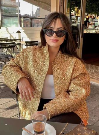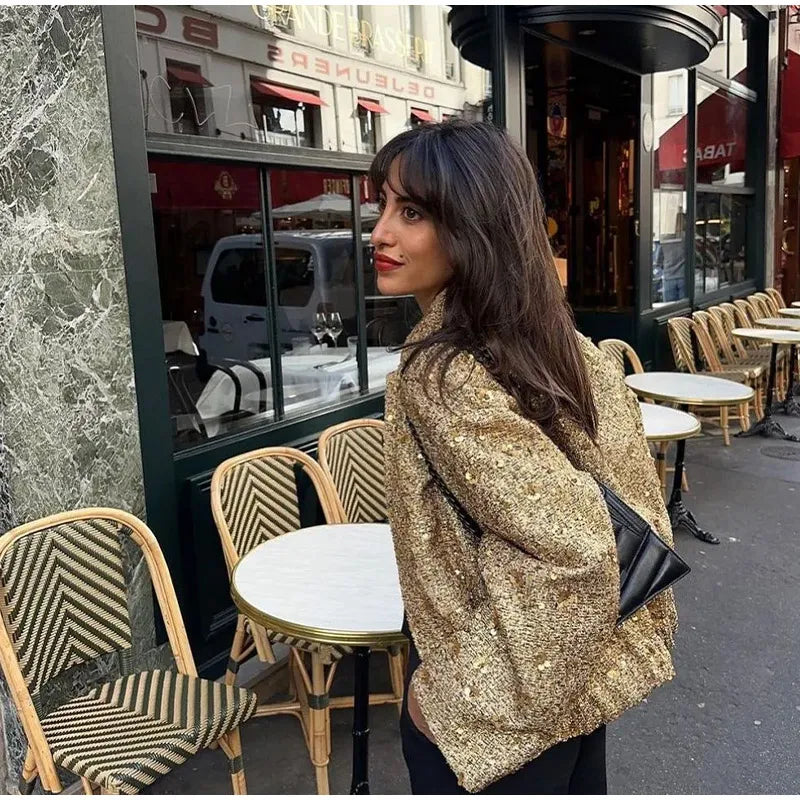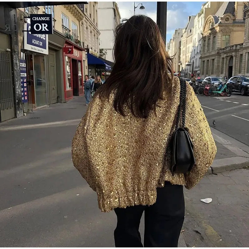 Jackan har en unik stil med paljetter som ger en glittrande touch, vilket gör den idealisk för både vardag och festliga tillfällen. Det mjuka fodret ger en lyxig känsla och gör den bekväm att bära hela dagen.