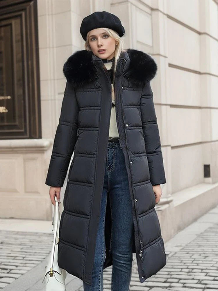 Dam Vinterjacka Lång med Pälskrage och Justerbart Bälte