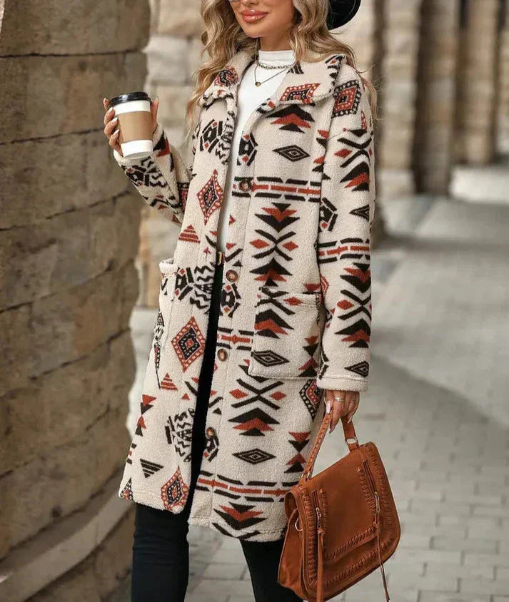 Denna vinterjacka har ett modernt tryckmönster och en figurnära passform som framhäver din silhuett. Den är idealisk för både vardagliga och mer formella tillfällen, vilket gör den till ett mångsidigt val för din garderob.