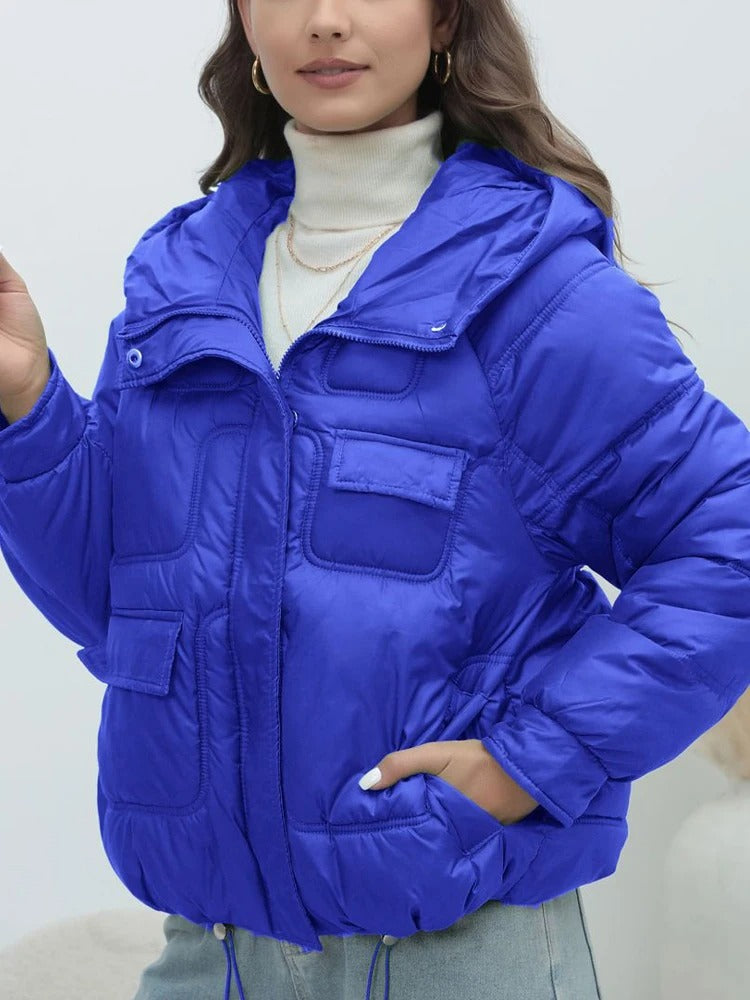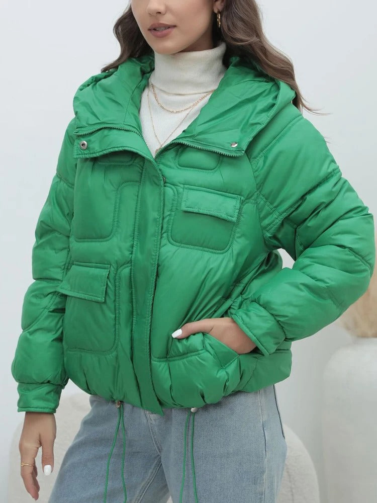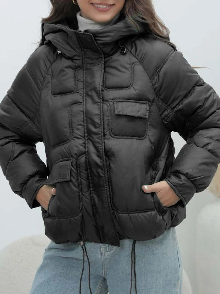 Jackan har en elegant och praktisk design med en integrerad huva som skyddar mot vind och snö. Den smala passformen gör att du kan känna dig snygg även i vinterväder, perfekt för både utomhusaktiviteter och avslappnade stadspromenader.