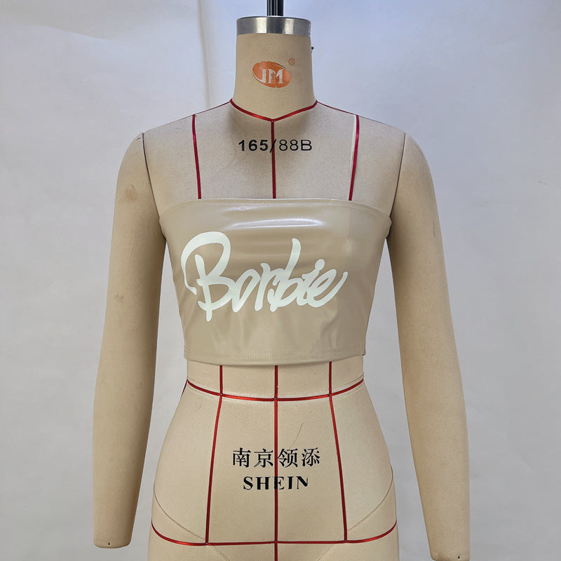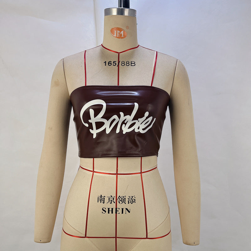 Dam Wrap Top Festtoppar Kontrastdesign Stretch PU