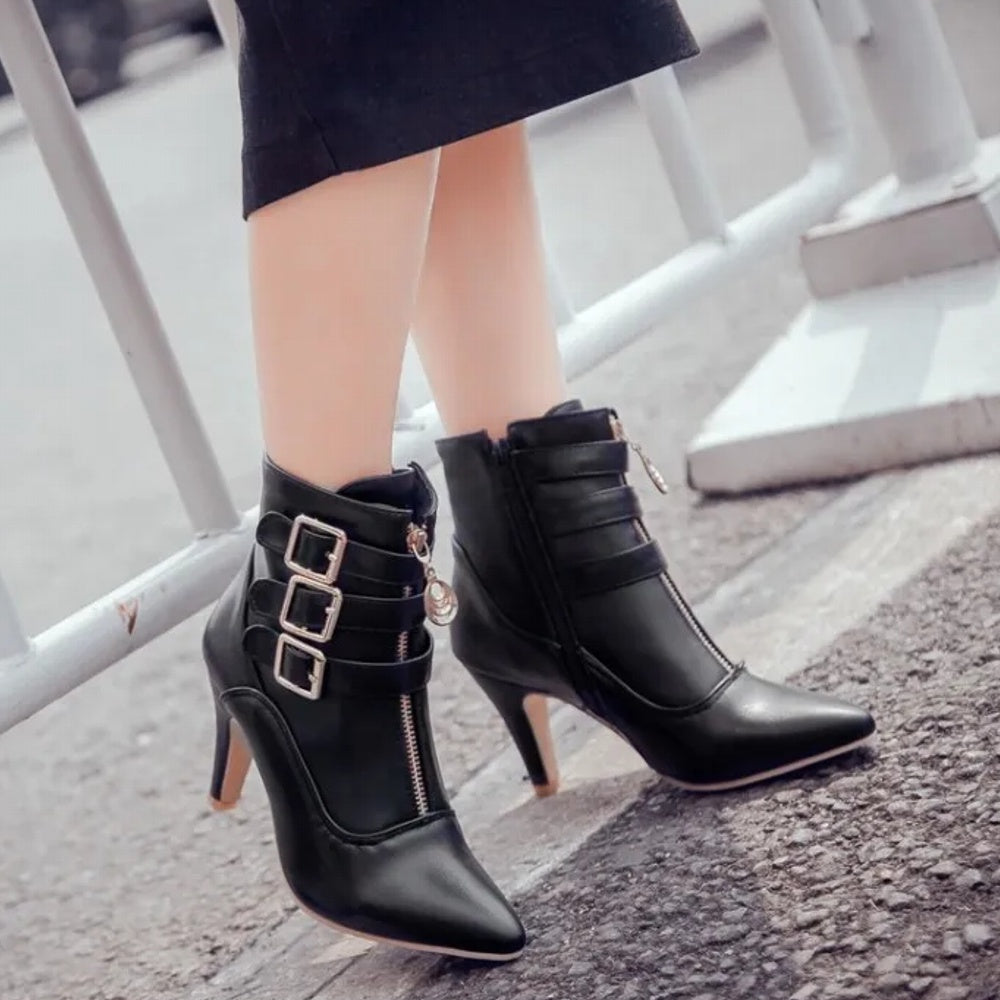 Upplev stil och komfort med dessa moderna ankelstövlar. Deras eleganta design och praktiska blixtlås gör dem till ett perfekt val för både vardag och fest.