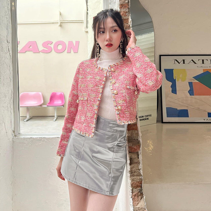 Upplev en ny nivå av stil med vår minikjol i metallicdesign, perfekt för den modemedvetna kvinnan. Denna kjol ger en känsla av lyx och elegans, vilket gör att du alltid känner dig fantastisk när du bär den.