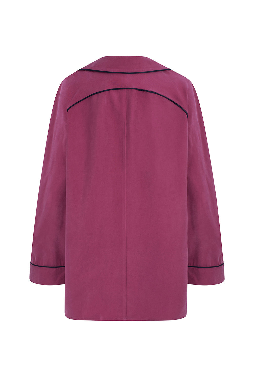 Skjortan har en unik design med en slående krage och två praktiska fickor på framsidan. Med sina kontrasterande detaljer är den ett utmärkt val för höstsäsongen, vilket gör att du kan skapa en trendig och avslappnad look.