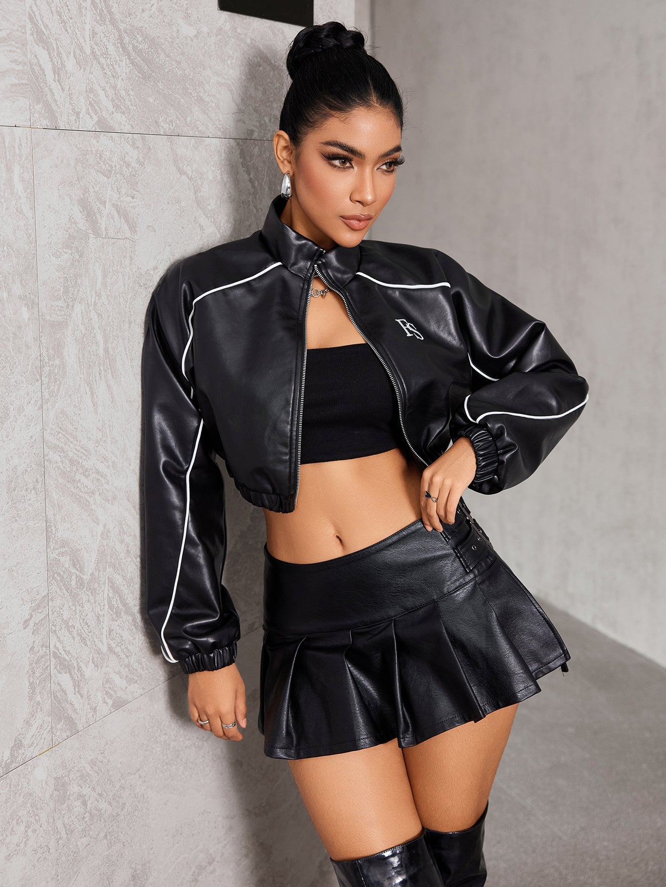 Jackan har en modern, beskuren passform som gör den idealisk för avslappnade tillfällen eller en dag på stan. Den är tillverkad av hållbart PU-läder, vilket ger en lyxig känsla och en stilren look.