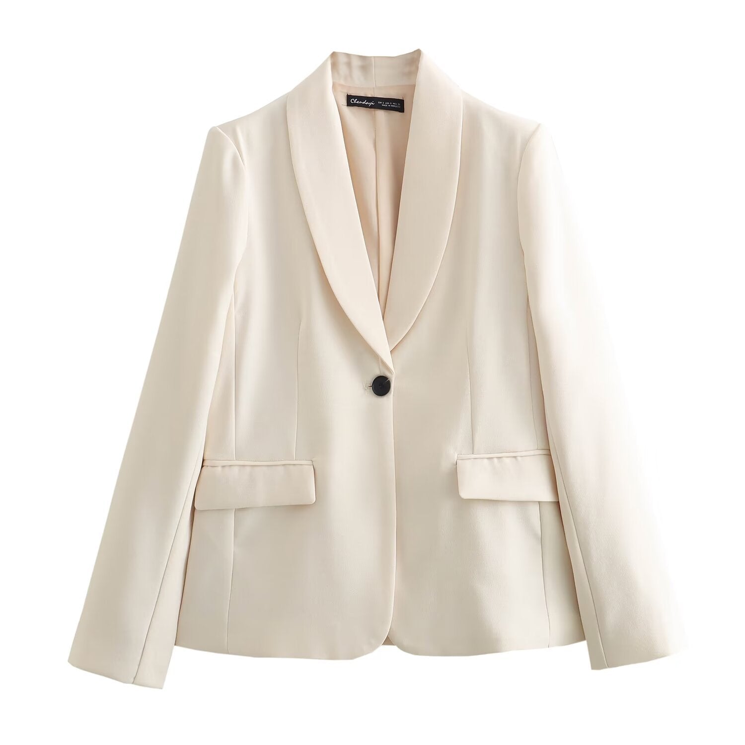 Damjacka Hög Midja Enknapps Polyester Långärmad Jacka för Dam