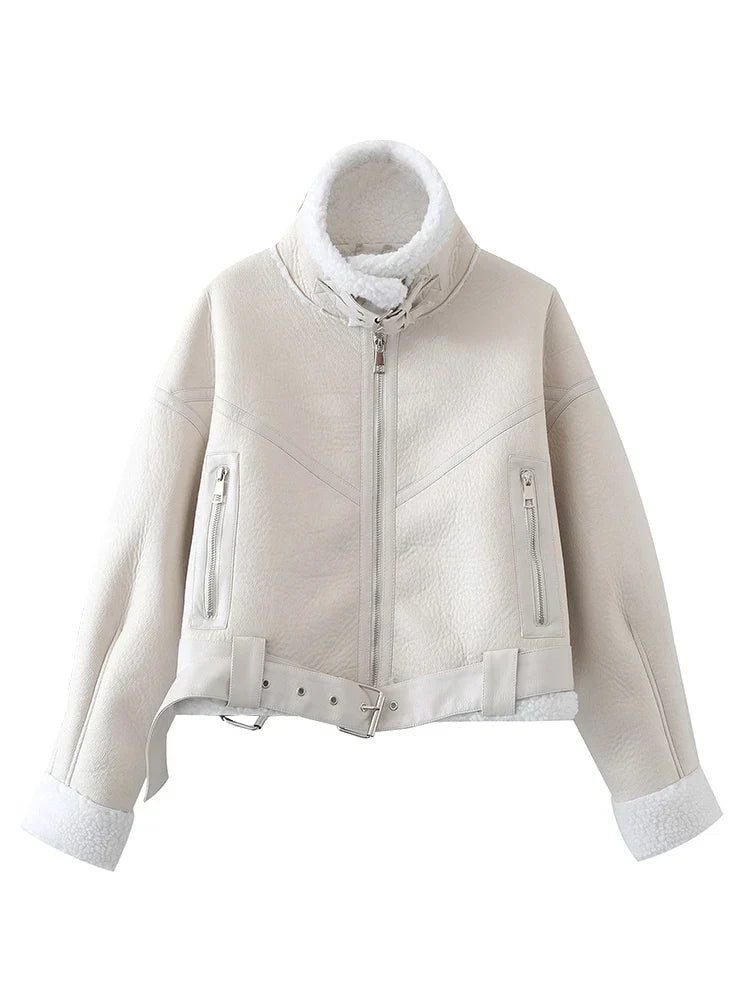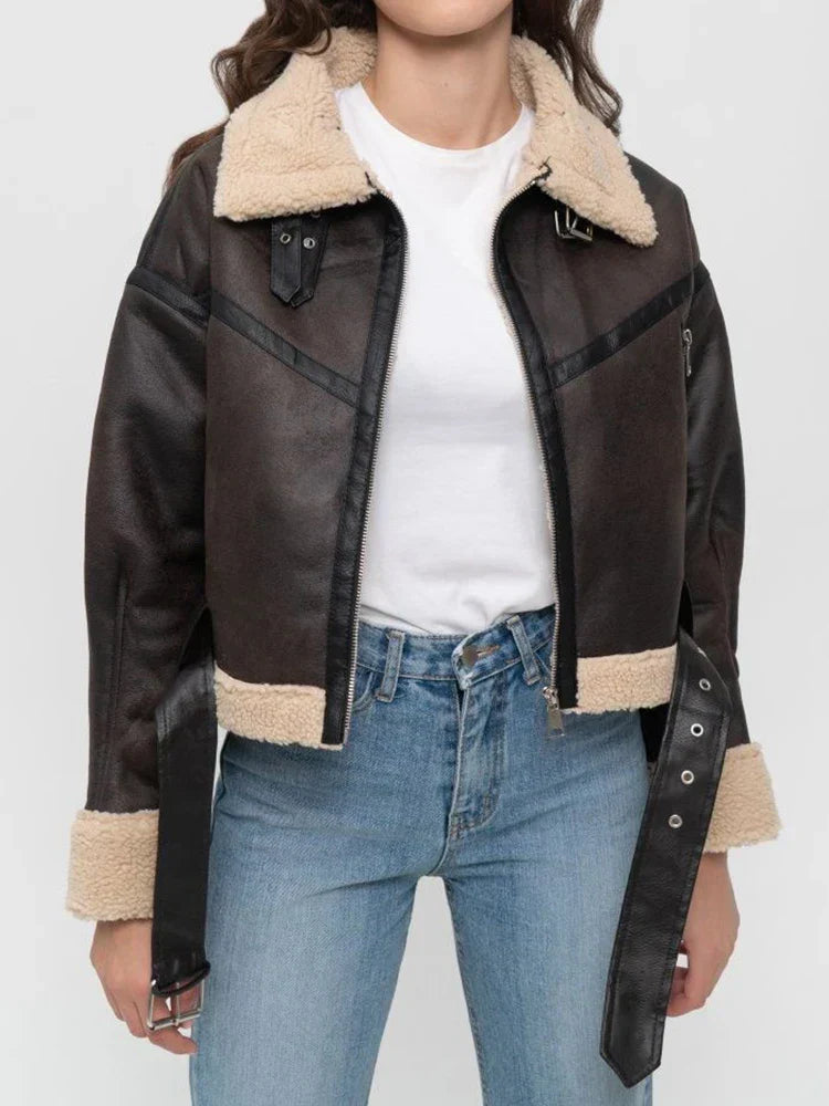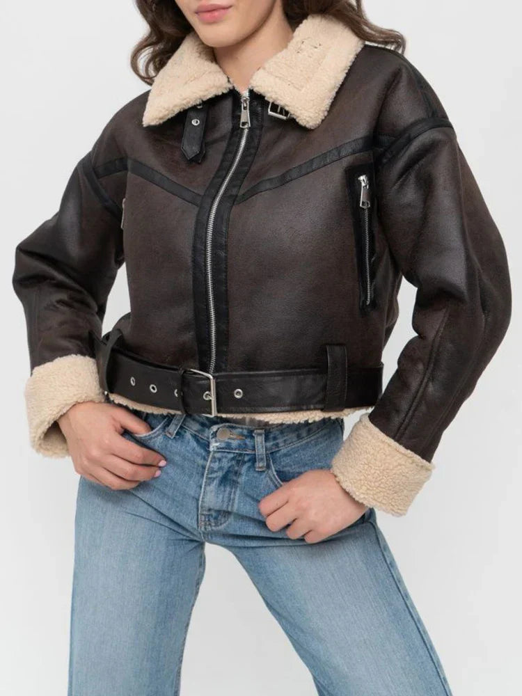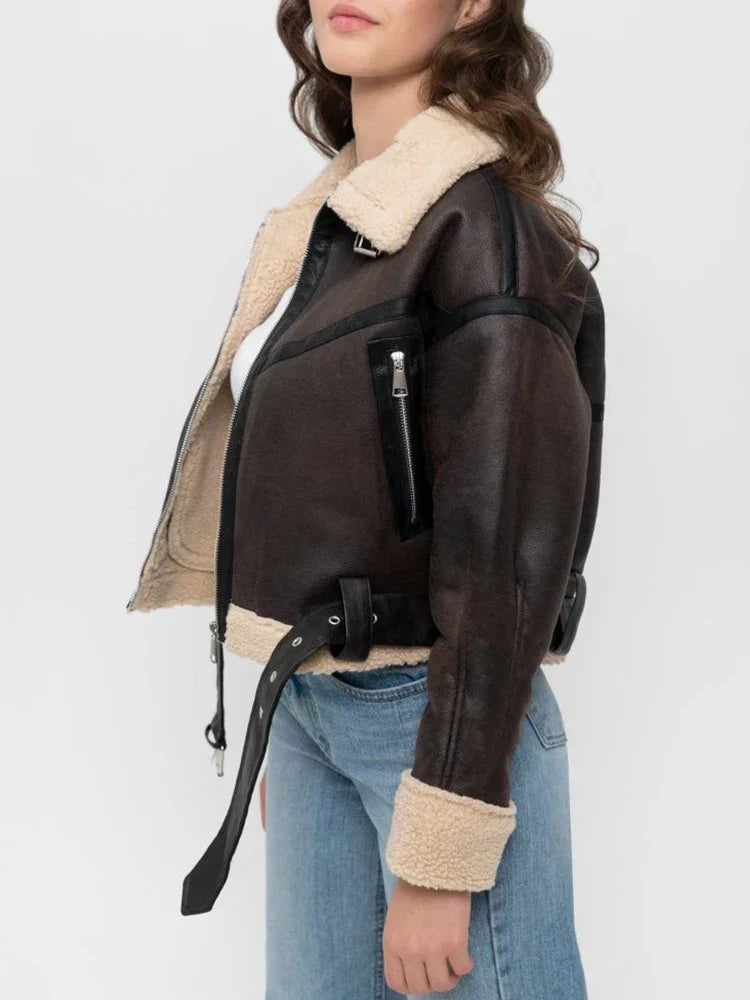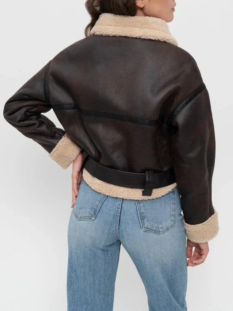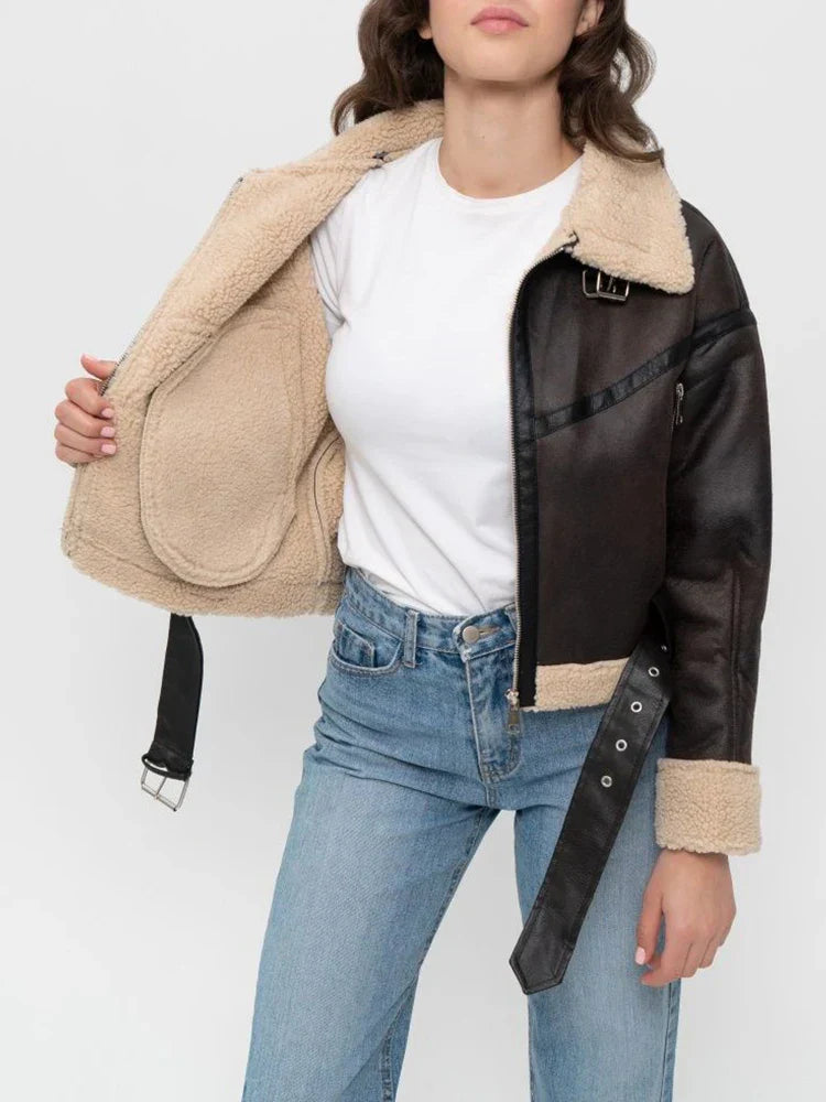 Damjacka i Syntetiskt Läder med Pälsfoder - Elegant Jacka för Kalla Vinterdagar