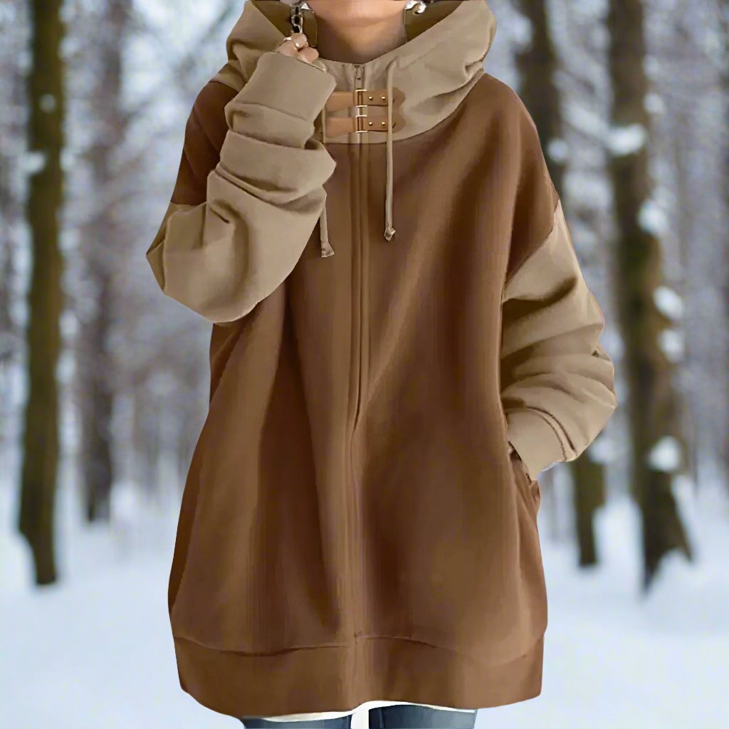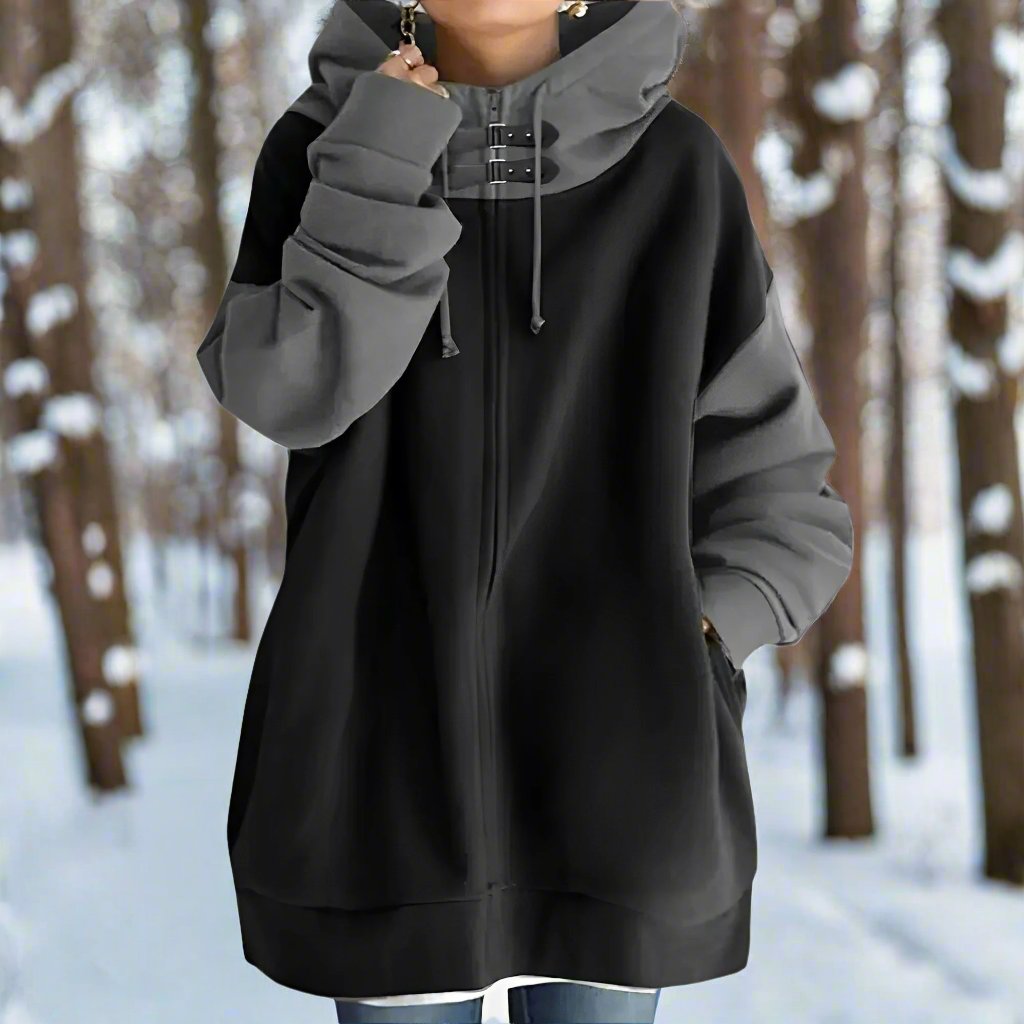 Damjacka med Bred Huva och Blixtlås i Polyester för Dam