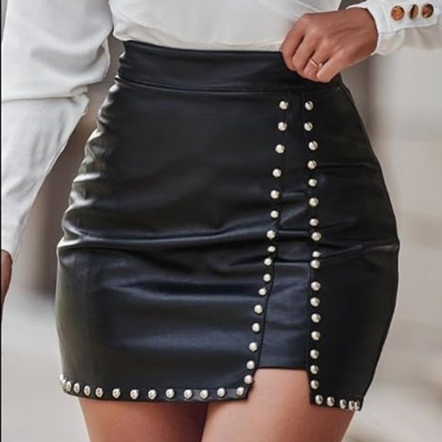 Upplev en unik stil med vår kjol som kombinerar djärvhet och elegans. Den asymmetriska designen och nitarna ger en iögonfallande look som gör att du känner dig självsäker och trendig.