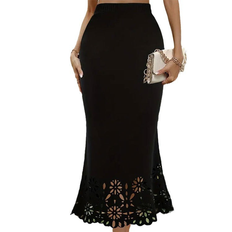Kjolen har ett elegant snitt och ett unikt utskuret mönster på nederkanten som verkligen framhäver din stil. Den är idealisk för olika tillfällen, oavsett om du klär upp dig med en chic blazer eller håller det enkelt med en t-shirt.
