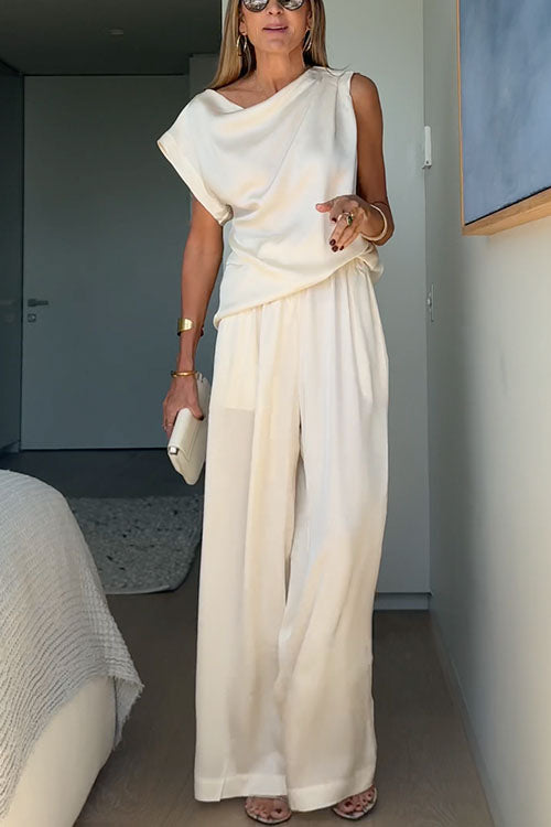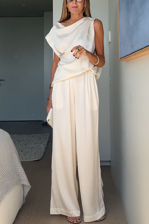 Damkläder Asymmetrisk Axeltröja och Breda Byxor i Bomull och Polyester