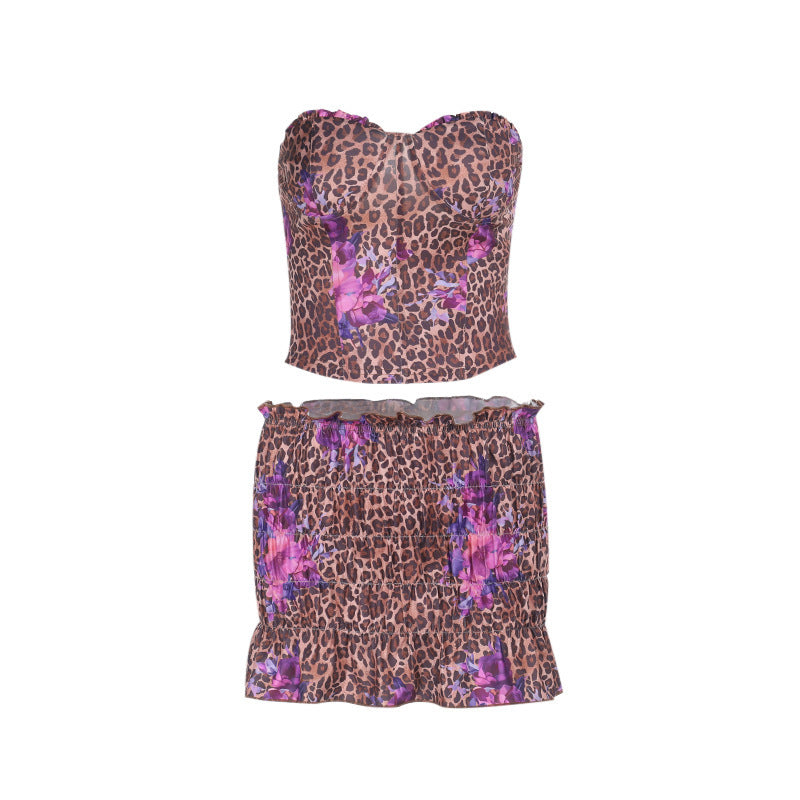 Upplev en perfekt kombination av stil och komfort med vår damskördetopp och minisockor i blommigt leopardmönster. Denna ensemble ger dig en känsla av elegans och självsäkerhet vid varje tillfälle.